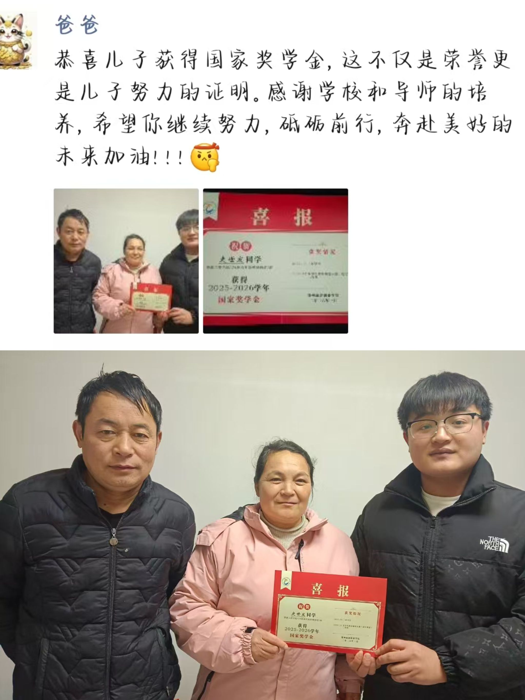 近日,随着一封封喜报陆续寄达,温暖的回响也接踵而至。家长们收到喜报后,纷纷通过微信、电话等方式向学院反馈喜悦之情,字里行间满是自豪与欣慰。“看到孩子的努力得到国家和学校的认可,我们全家都无比激动,感谢学院老师们的悉心教导与一路陪伴!”一位获奖学子家长动情地说道。不少家长将喜报郑重珍藏,或拍照分享至亲友圈,或精心装裱摆放,让这份荣誉成为激励孩子继续前行的精神动力。获奖学子们也纷纷表示,这份喜报不仅是个人奋斗的勋章,更是家校共育的见证,未来将以更饱满的热情投入到学习实训中,不负国家、学校与家庭的期望,在智能工程领域勇攀高峰。