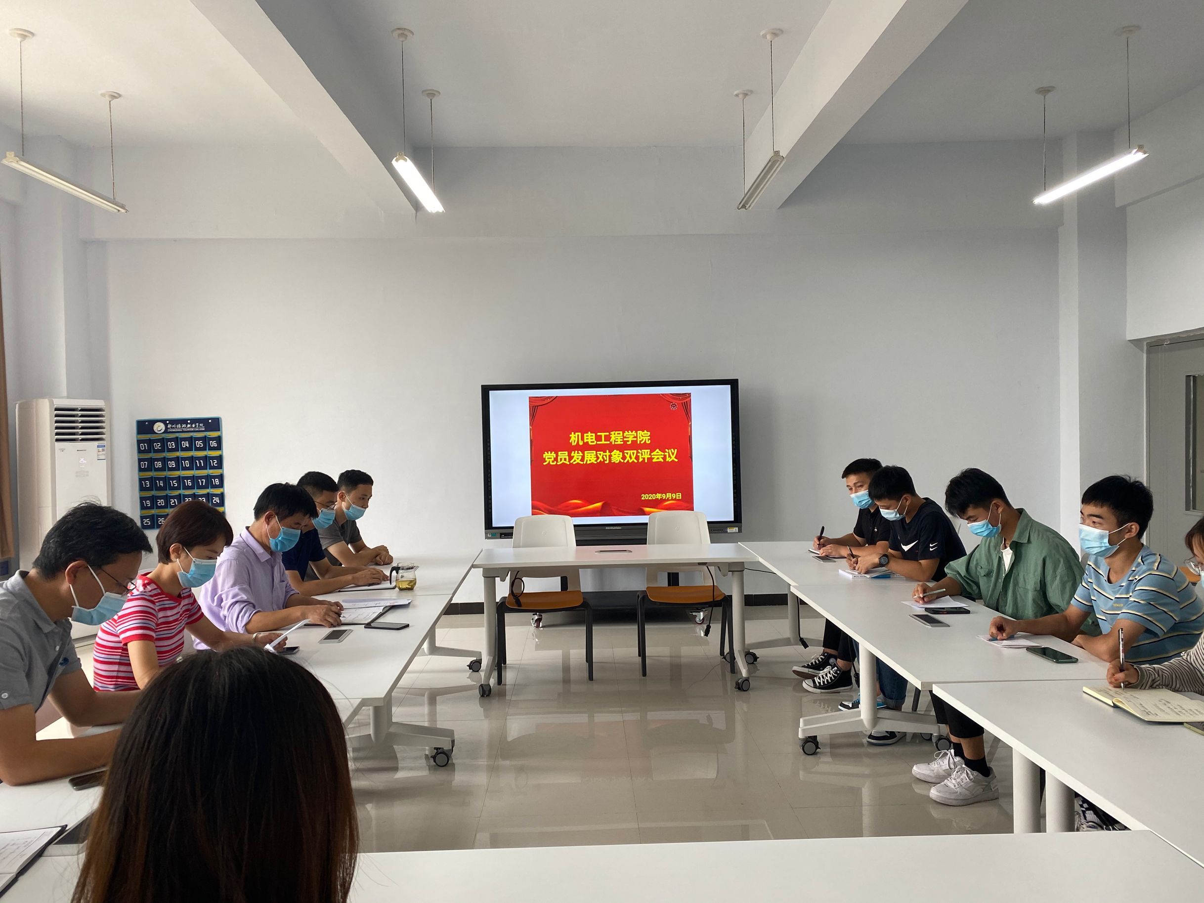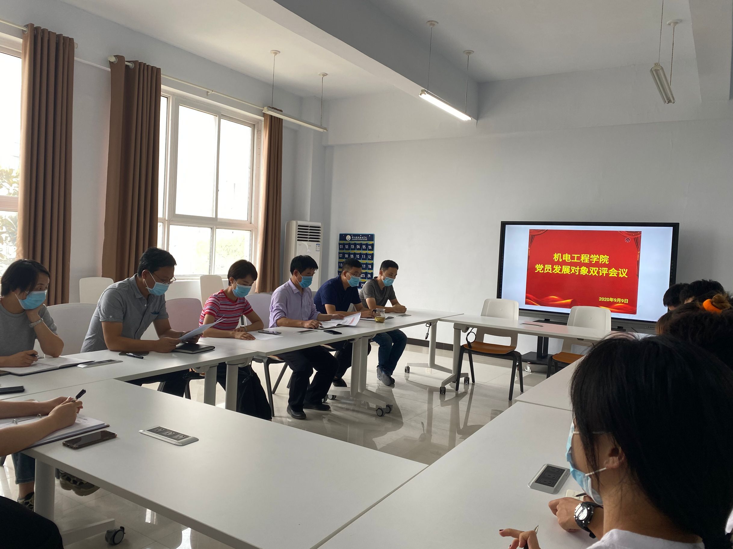 2020年9月9日,机电工程学院学生党支部于教学楼212会议室召开机电工程学院党员发展对象双评会议。会议由马彦锋老师主持,我院党总支书记段伟、党员代表以及群众代表参加会议。
