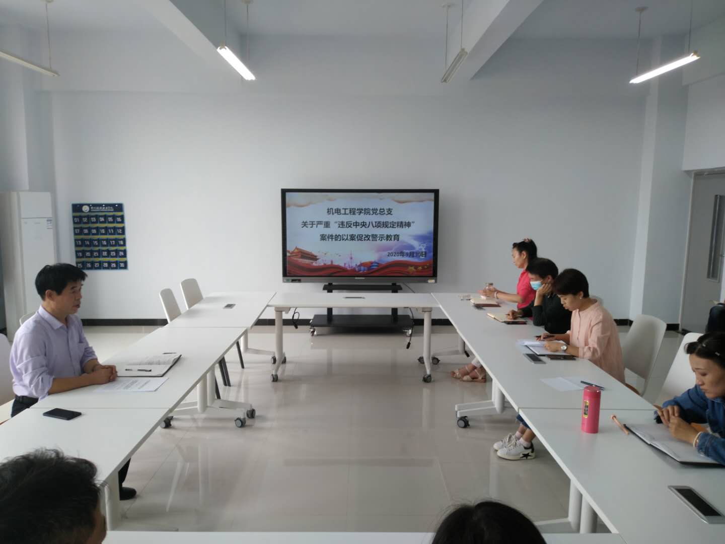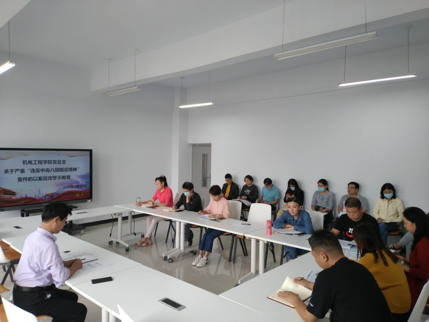 为深入推进以案促改工作,按照中共郑州市纪委文件工作要求,机电工程学院深入开展“以案促改”第二阶段工作。9月30日下午两点,学院党总支组织全体教师在1A212会议室召开关于严重“违反中央八项规定精神”案件的以案促改警示教育会议,会议由教工党支部书记韩晶主持,学院党总支书记段伟发表讲话。