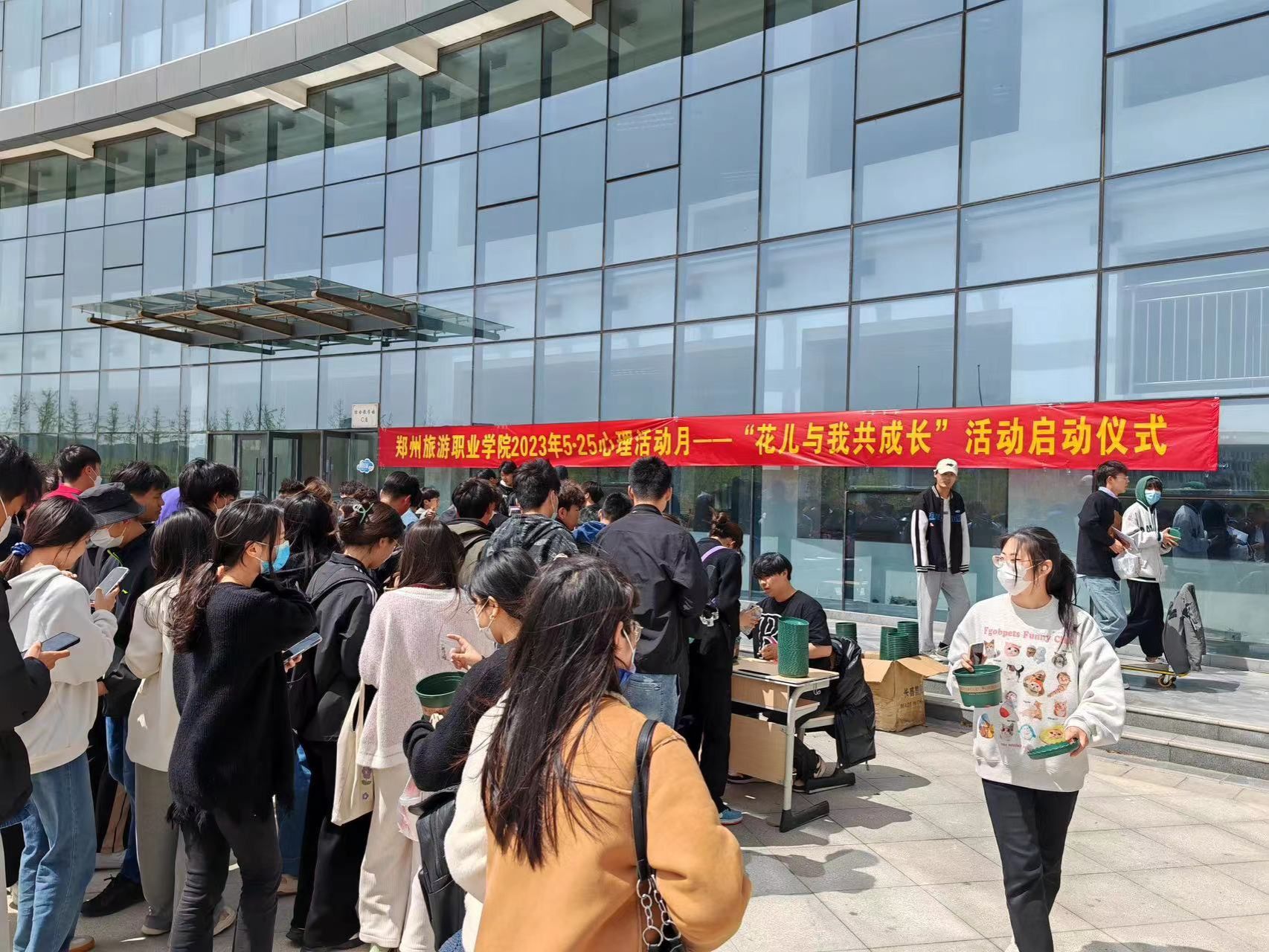 为进一步推动海洋之神590登录入口大学生心理健康教育工作,提高大学生的心理健康水平,丰富心理健康教育的活动形式,4月6日上午,海洋之神590登录入口在综合教学楼前举行2023年5.25心理活动月——“花儿与我共成长”活动启动仪式。心理健康中心张爱梅、机电工程学院马彦锋、其他二级学院心理负责老师及学生500余人参加活动。