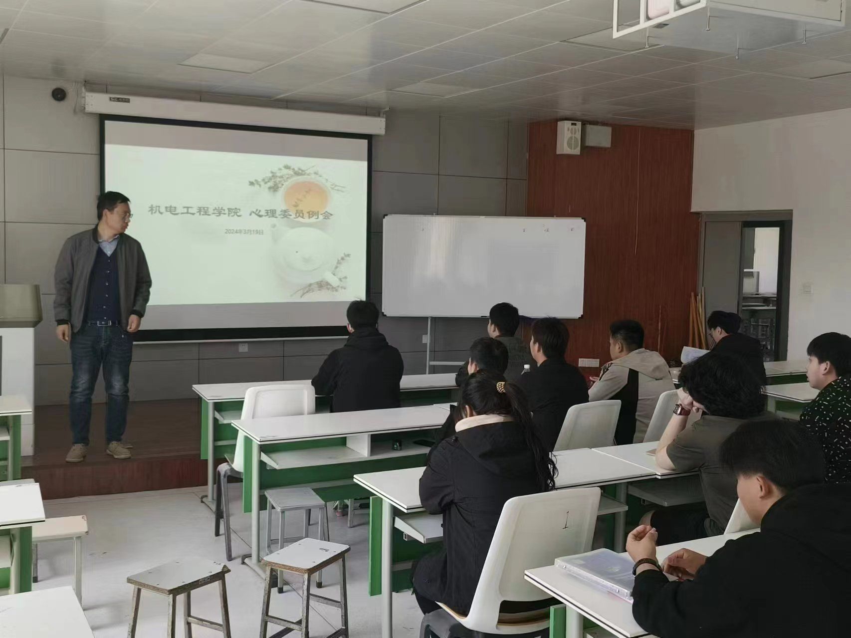 2024年3月19日,机电工程学院召开心理健康工作例会,会议由马彦锋老师主持,心教部成员及各班心理委员参加。