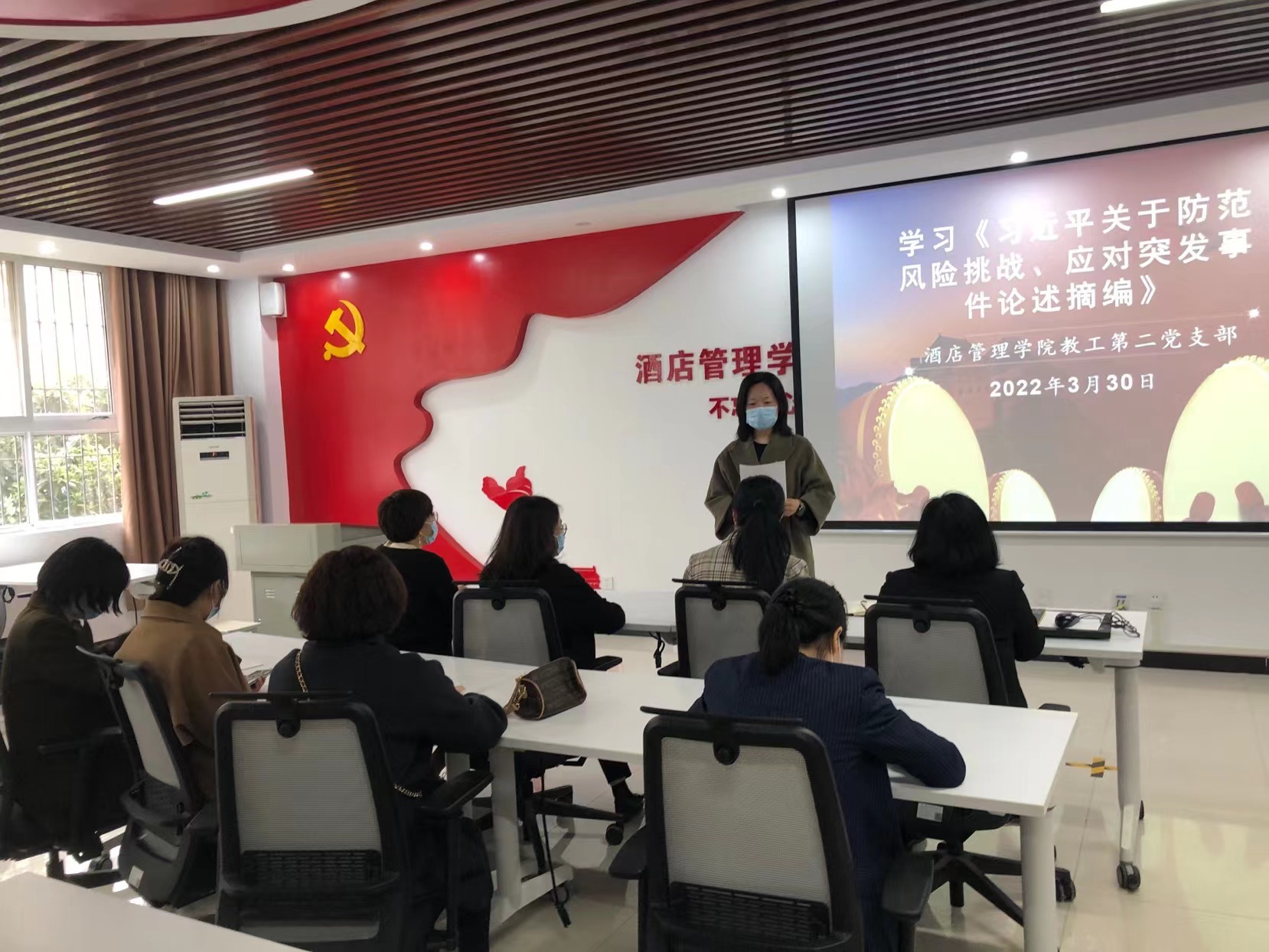根据上级党委要求,酒店管理学院教工第二党支部于2022年3月30日在酒店管理学院1楼党员活动室,召开了《习近平关于防范风险挑战、应对突发事件论述摘编》专题学习会议。