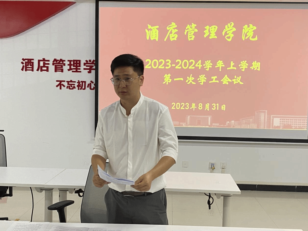 为确保新学期学生工作平稳有序高效开展,明确工作重点,酒店管理学院于8月31日下午在党员活动室召开2023--2024学年上学期第一次学工会议。会议由团总支书记侯宁波主持。