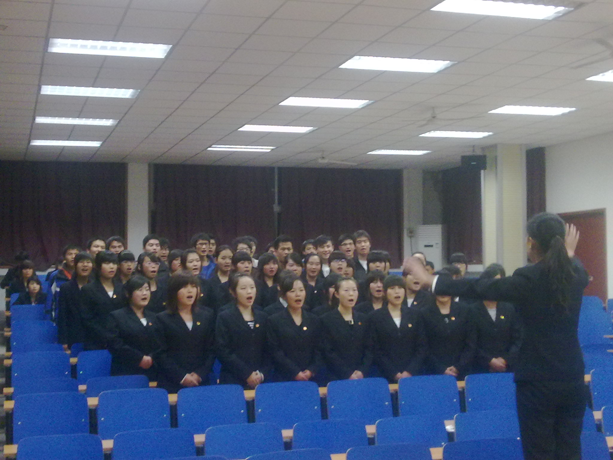 为丰富广大学生的校园文化生活,培养同学们的爱国精神,构筑和谐校园,2011年11月9日晚7点我系学生会文体部在信息中心一楼报告厅特组织了以“歌唱祖国,不忘国耻”为主题的12·9大合唱比赛。我系谭振宇老师、史帅老师、李舒老师、王芳老师、李俊老师出席并做评委。