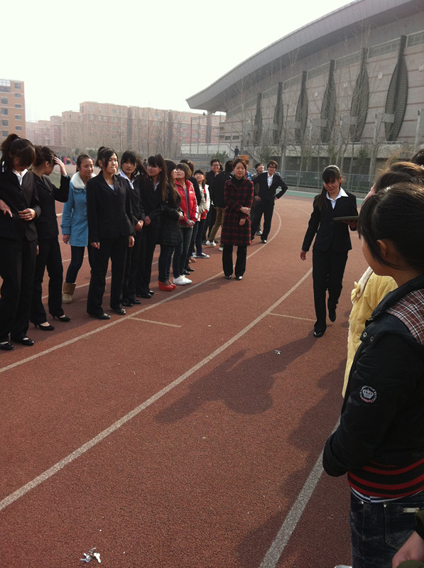 3月13日下午两点,2011级酒店管理八班同学于操场集合,在班主任石磊老师的带领下,进行了酒店礼仪方面的户外培训活动。