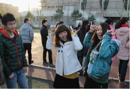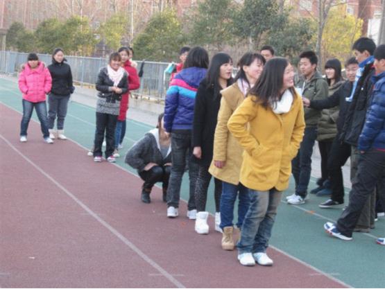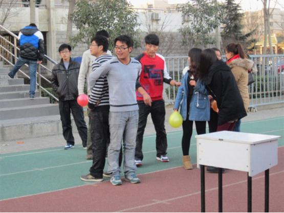 活动在12月5号四点钟伴随着两班各喊口号、唱班歌的声音开始了。活动共有:托盘接力赛、心心相印、指手画脚、众人一心四个项目。活动期间两班同学为本班参赛选手呐喊助威的声音不绝于耳,同学们玩的其乐融融,氛围十分融洽。
