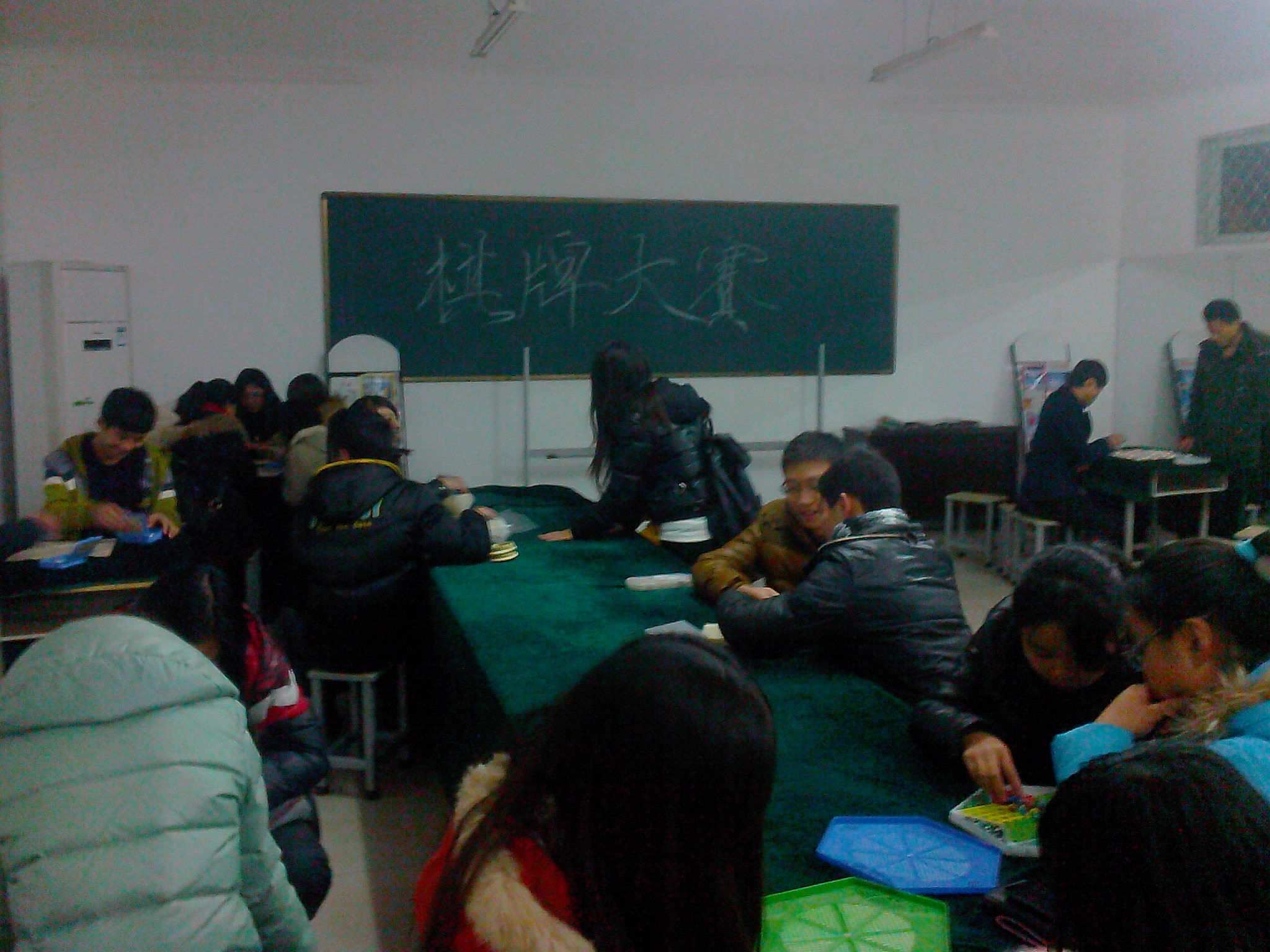 2013年12月10日酒店管理系在“学生之家”举办了由学生会主办的棋牌比赛。 此次活动针对酒店管理系所有学生,比赛项目有象棋、军棋、五子棋、跳棋和牌类双升等。比赛开始选手们安静地坐好等待比赛开始。比赛过程中所有参赛选手沉着冷静,面对逆风的局势表现得很淡定,从容地走好每一步棋,表现出了选手们良好的心态。比赛中,选手们沉着、冷静,不悔一步棋,失败了也不抱怨,表现出了选手们良好的心理素质。
