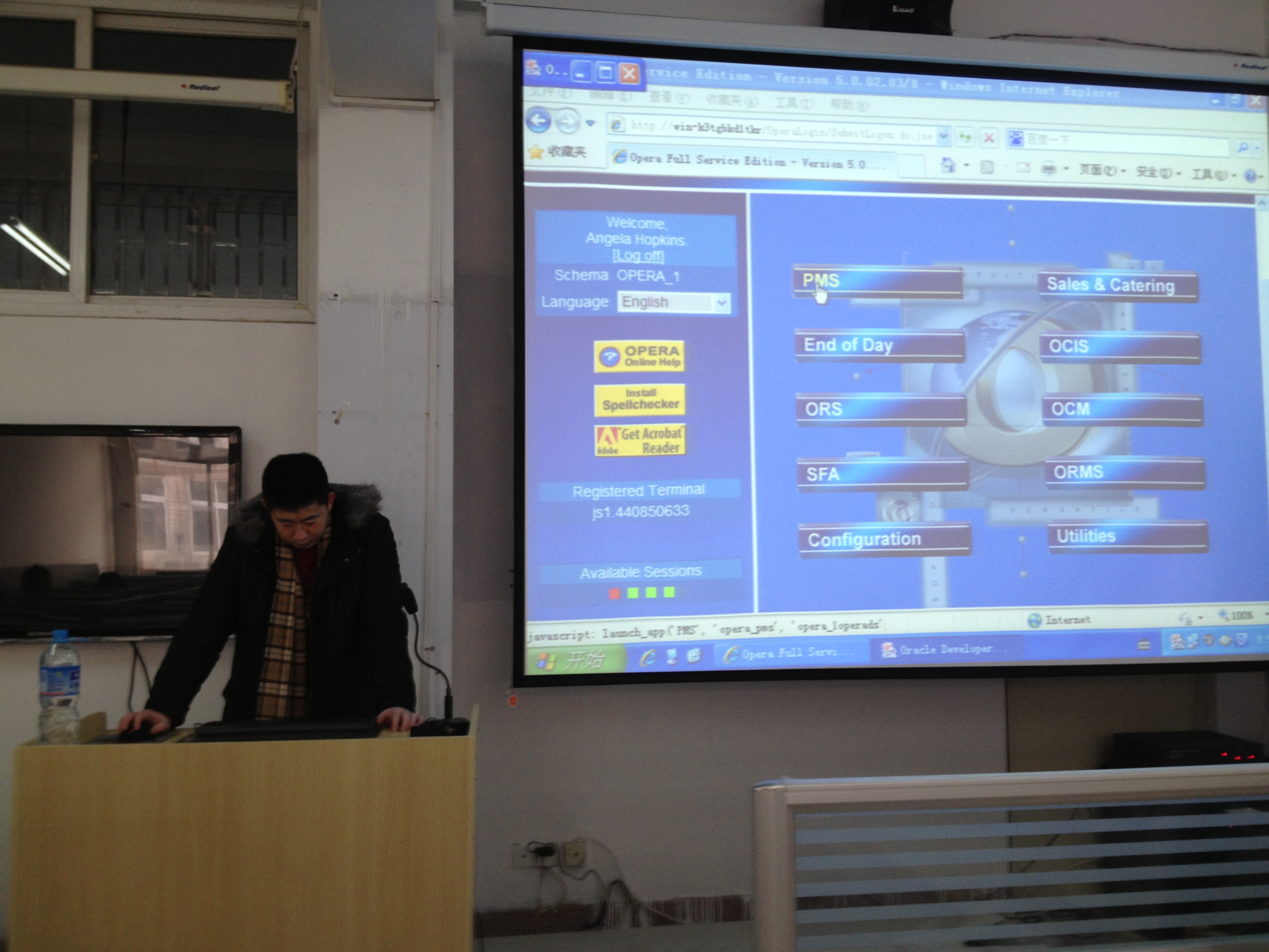 培训师在给老师们讲解Opera系统