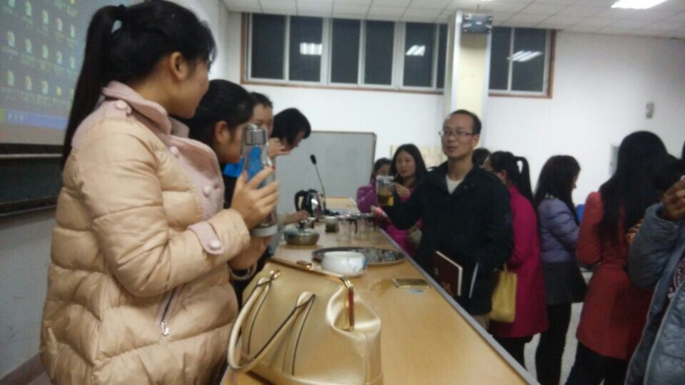 随后,讲座进入互动环节,李俊主任把讲座过程中泡制好的茶给同学们品尝,期间还不忘给大家科普,遇到胃溃疡、女孩经期这种情况最好不要饮茶。不知不觉一个小时过去了,同学们的脸上满是收获的愉悦。
