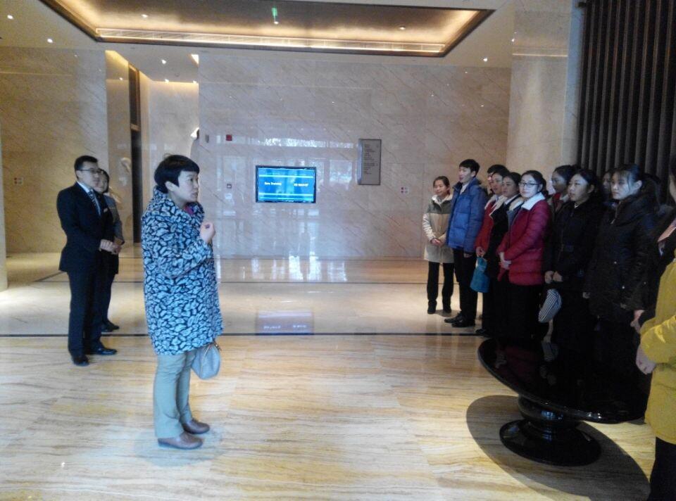 2014年12月17日上午10点,海洋之神590登录入口酒店管理系教学副主任钱丽娟代领我系两名专业课教师以及14级酒店职业能力提升班学生赴郑州希尔顿酒店进行参观学习教研活动。
