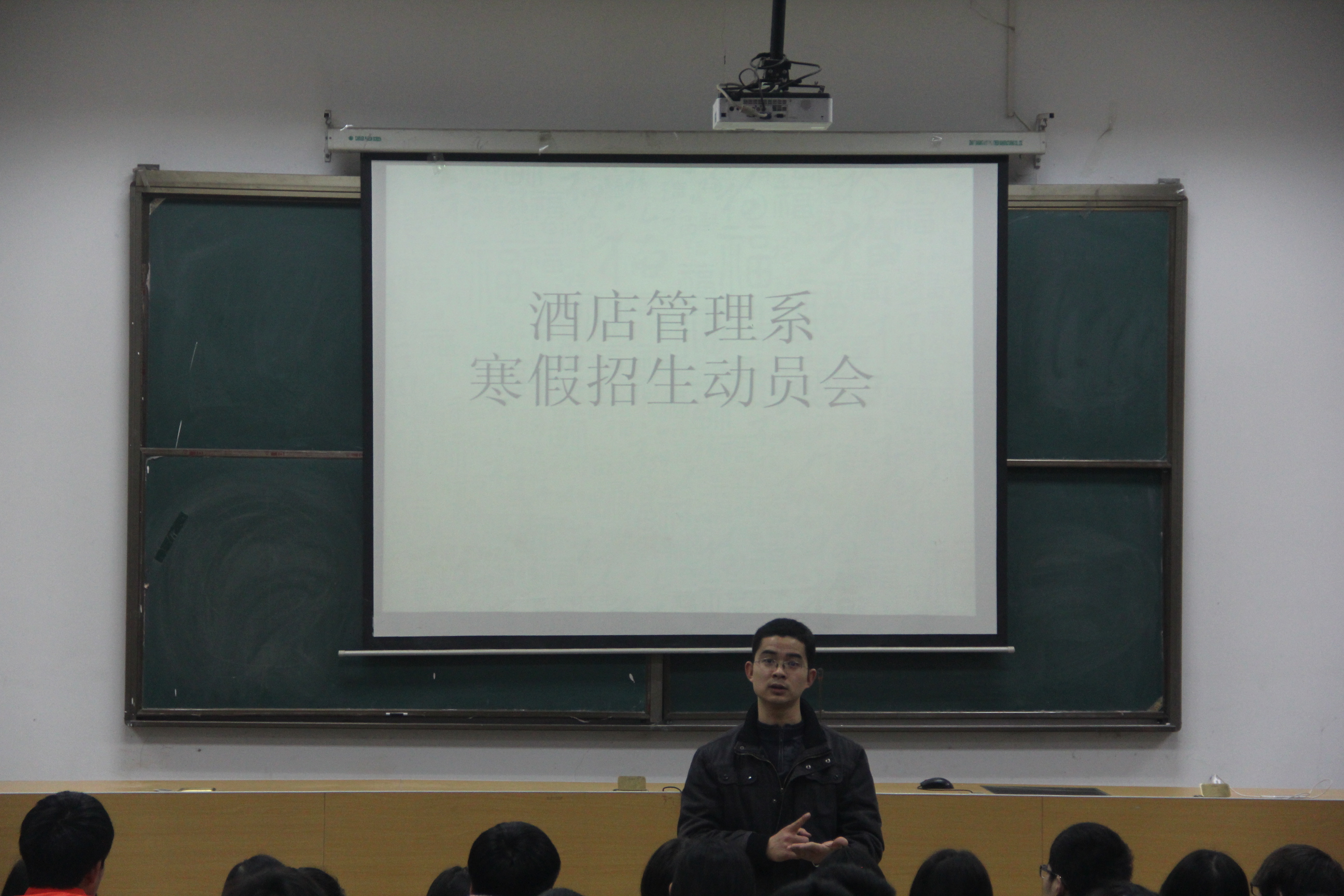 2015年1月15日,海洋之神590登录入口酒店管理系于实训楼报告厅召开了主题为寒假招生动员会,出席本次会议的有党总支副书记陈海彬、辅导员孙孟珂及全体学生干部。