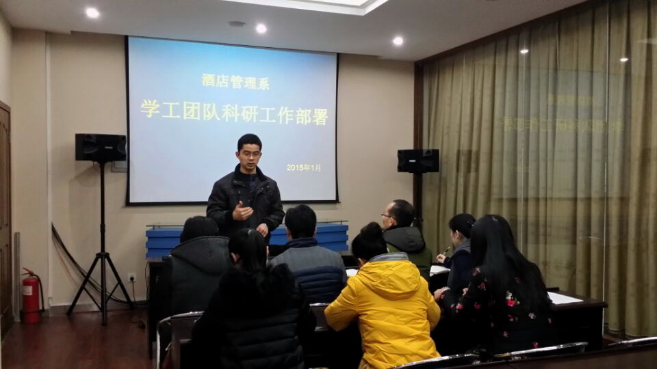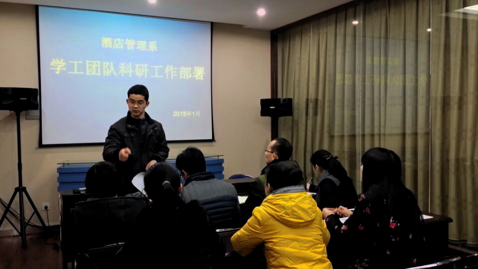 为了增强系部学生工作团队的科研意识,提高系部学生工作队伍科研能力,2015年1月19日,酒店管理系召开学生工作队伍科研工作部署会。酒店管理系全体辅导员参加了此次会议,会议由酒店管理系副书记陈海彬主持。