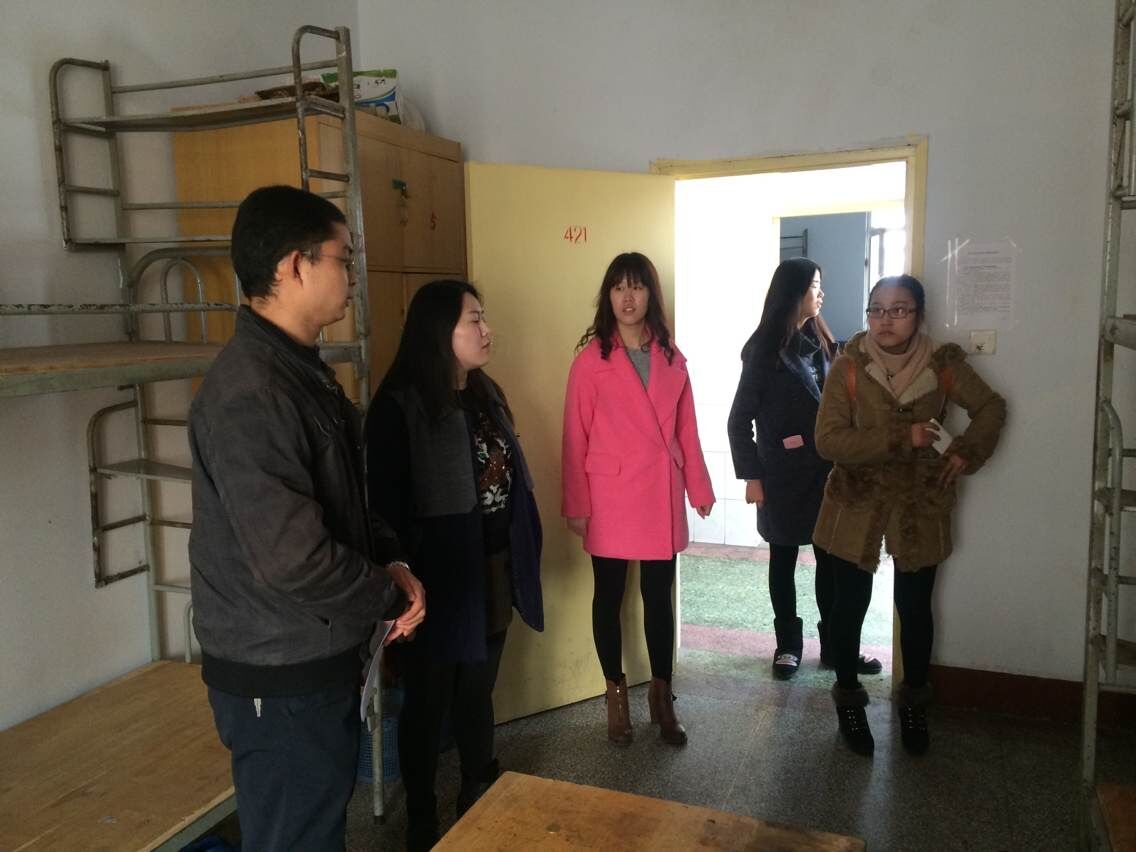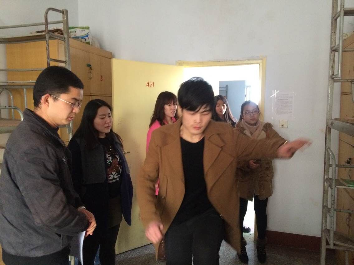 2015年1月23日下午,为了保证系部学生文明离校工作的顺利进行,确保教室和宿舍寒假期间的卫生和安全,酒店管理系副书记陈海彬督查教室和宿舍整理情况。