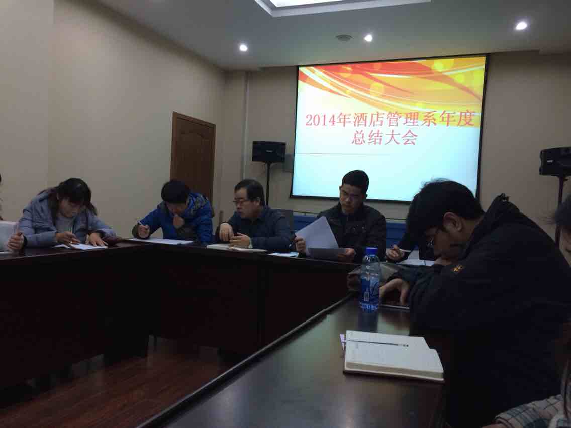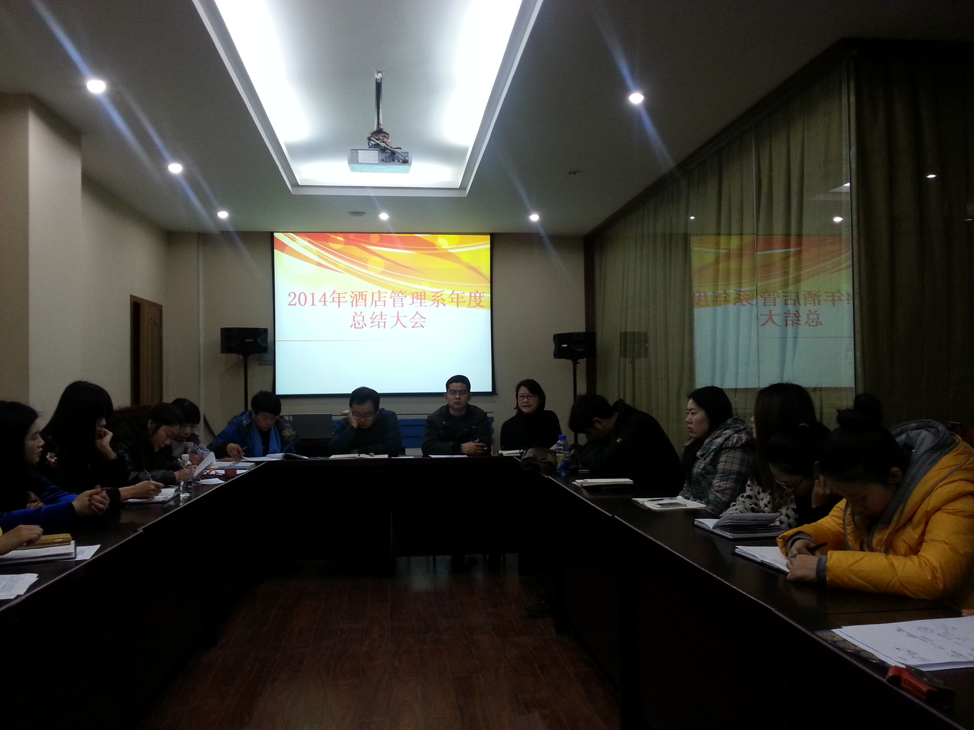 2015年1月25日上午8:30,酒店管理系在实训楼水晶客房召开系部2014年度工作总结会。酒店管理系主任李晓东主持此次会议,系部全体教职工参加了此次会议。