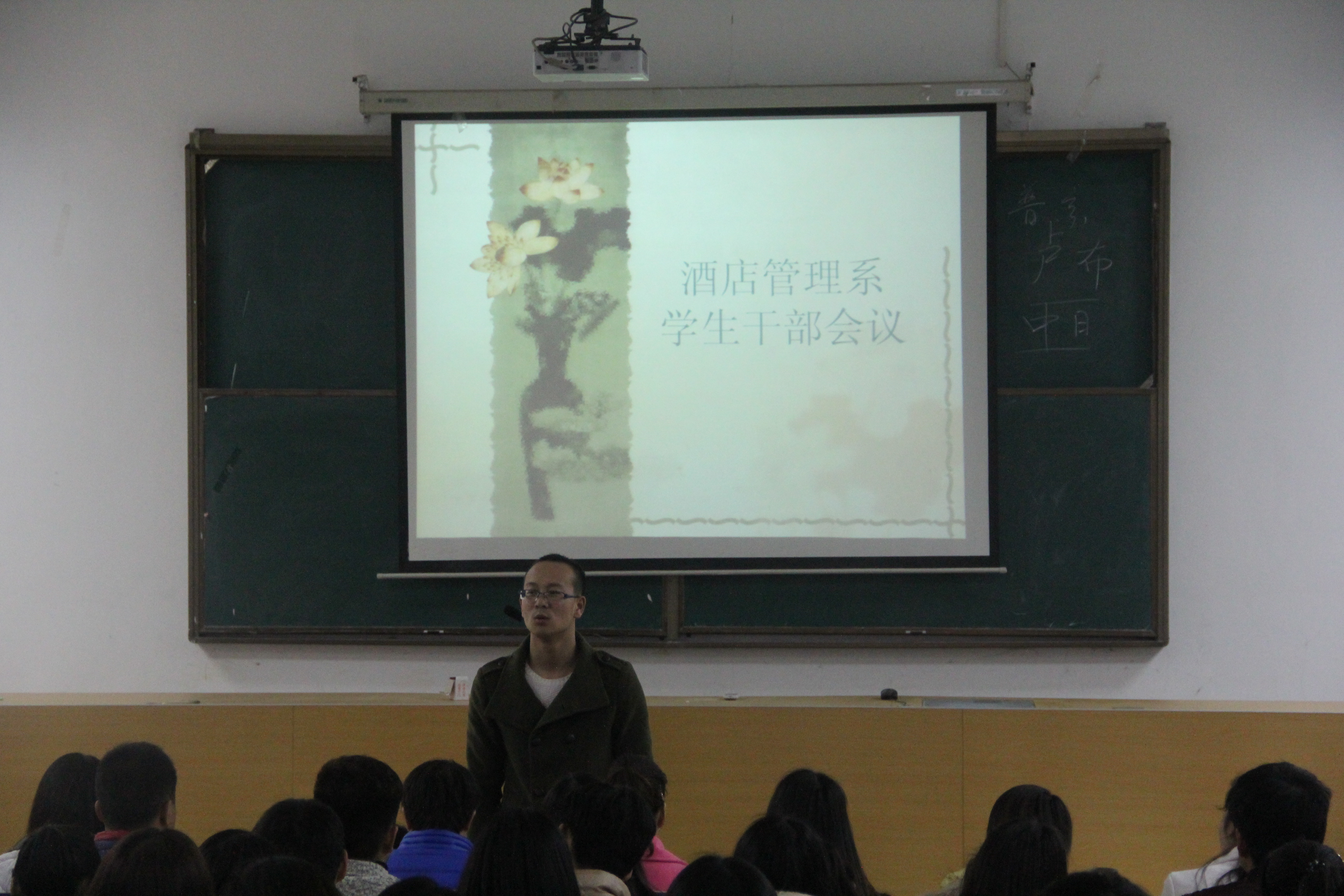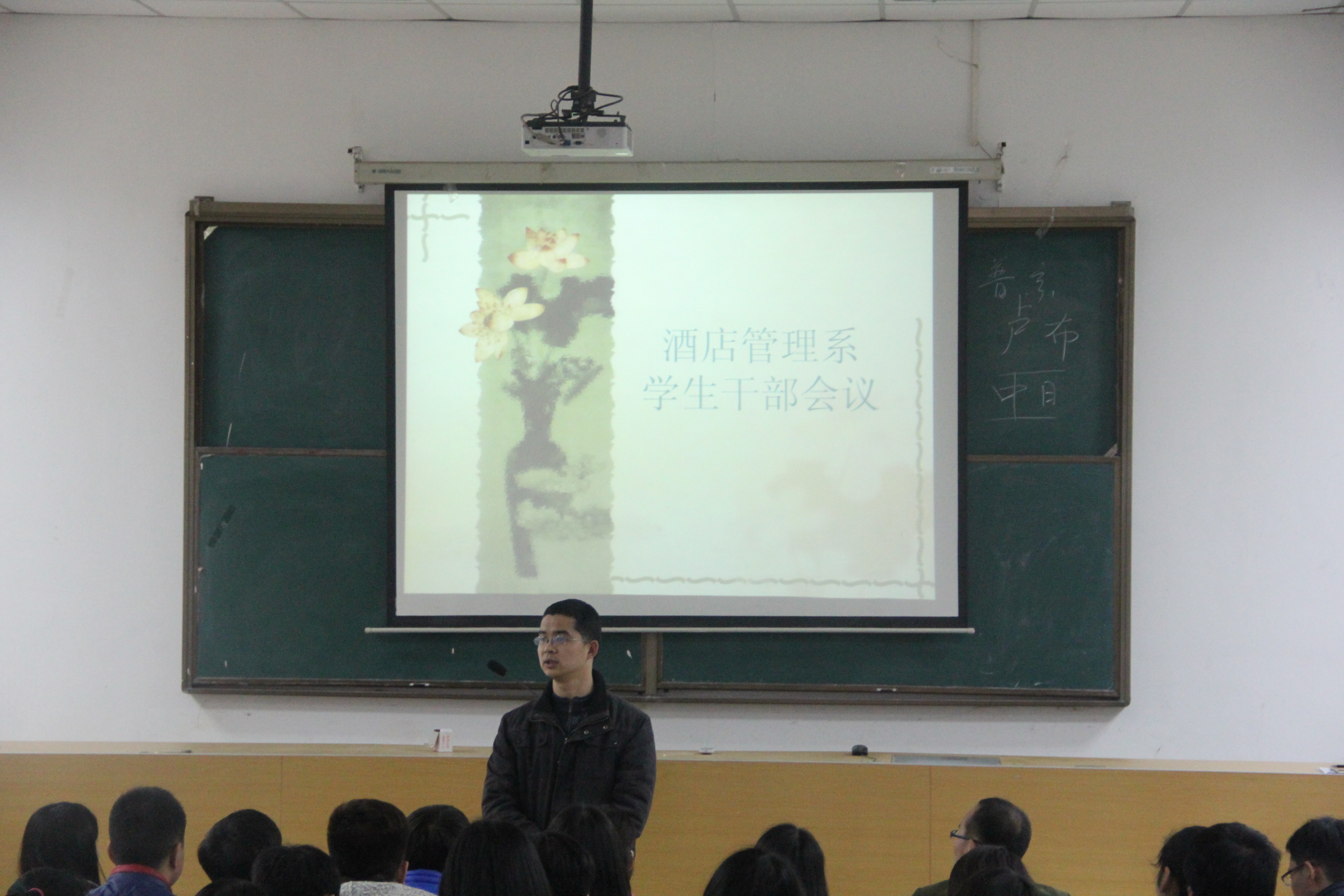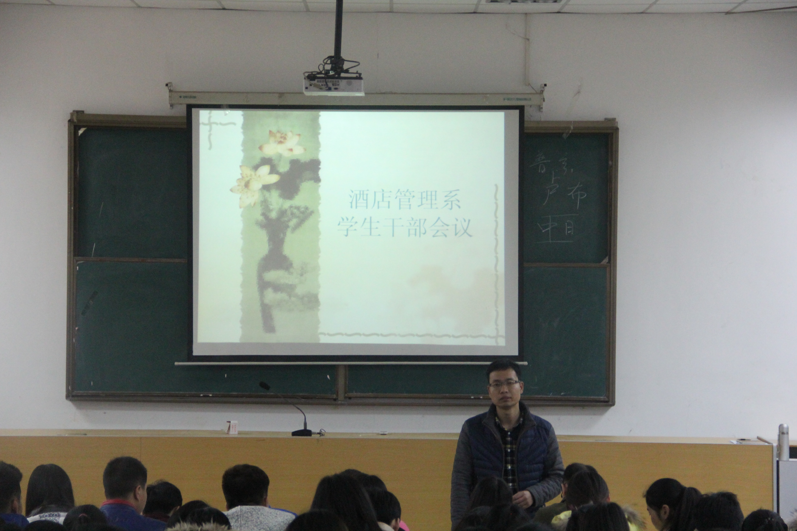 2015年3月9日,酒店管理系新学期第一次学生干部会议于实训楼一楼报告厅召开。