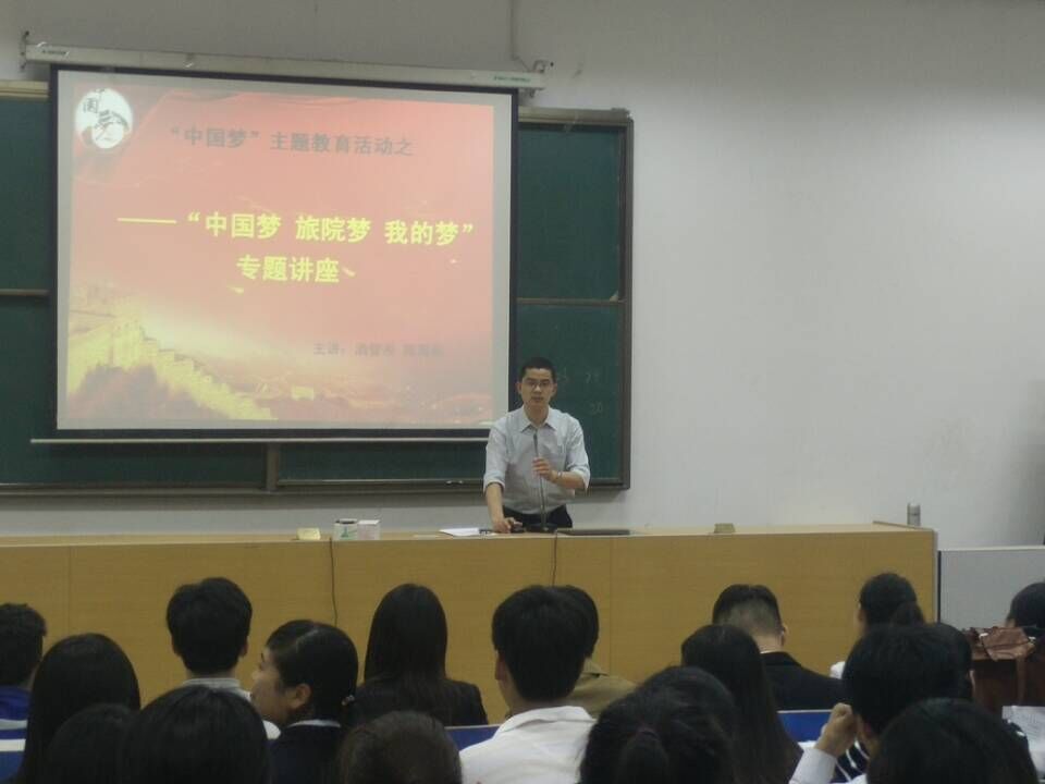 为了深入贯彻学习“中国梦”的伟大精神,引导广大学生将“中国梦”与个人志向结合,并落实于个人实践中。2015年4月27日中午13时,酒店管理系二级团校特邀酒店管理系党总支副书记陈海彬主讲本次课程。