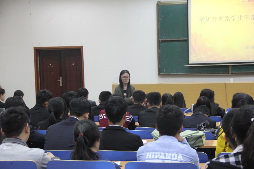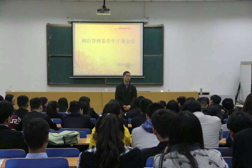 2015年5月11日17时,酒店管理系于实训楼一楼报告厅召开了学生干部会议。