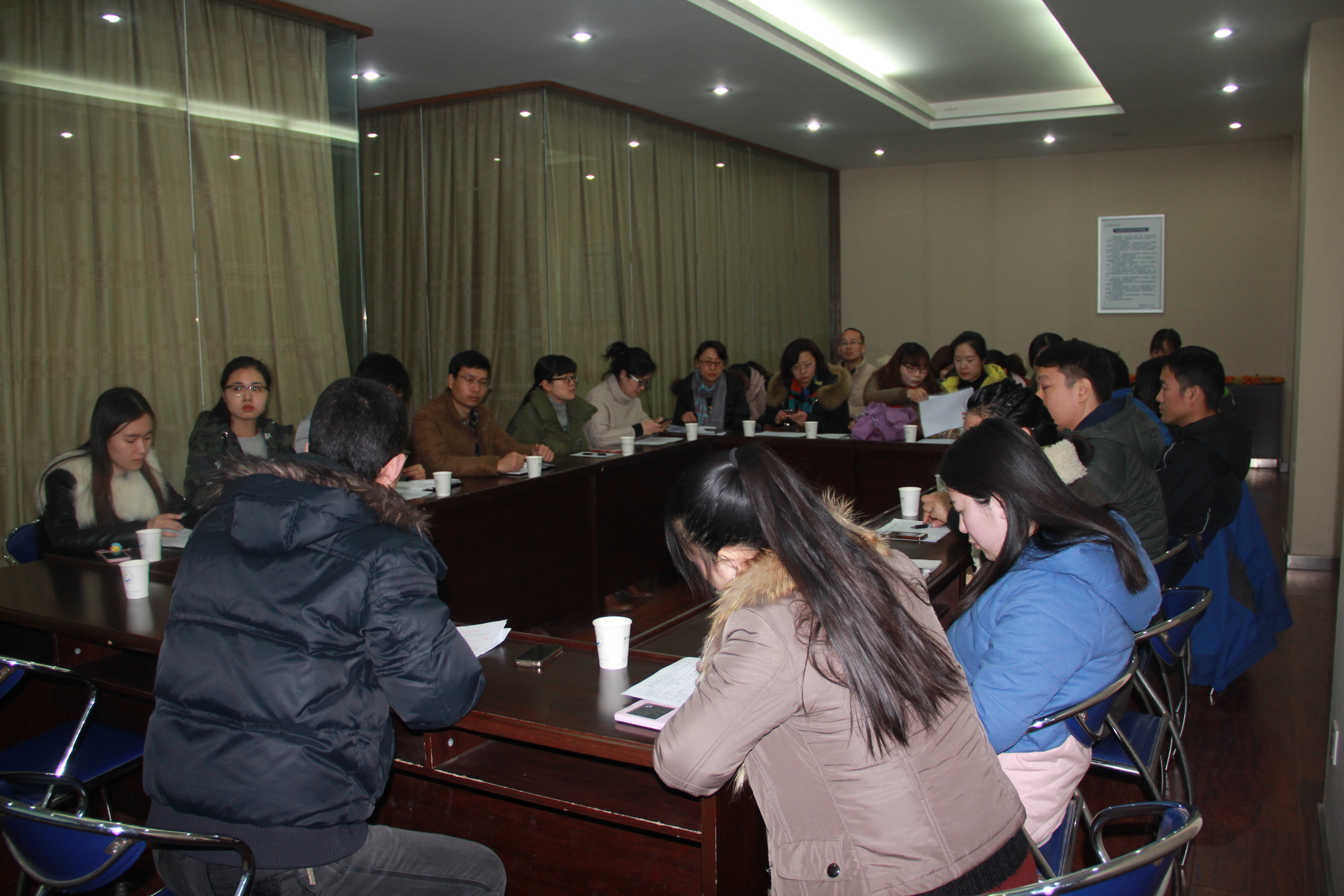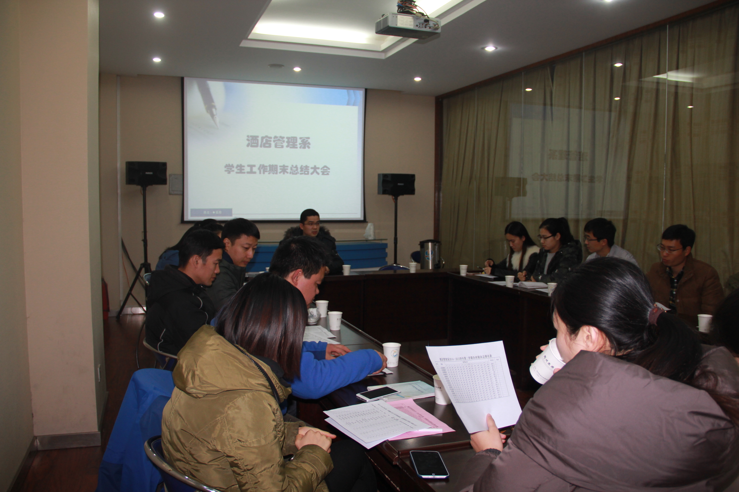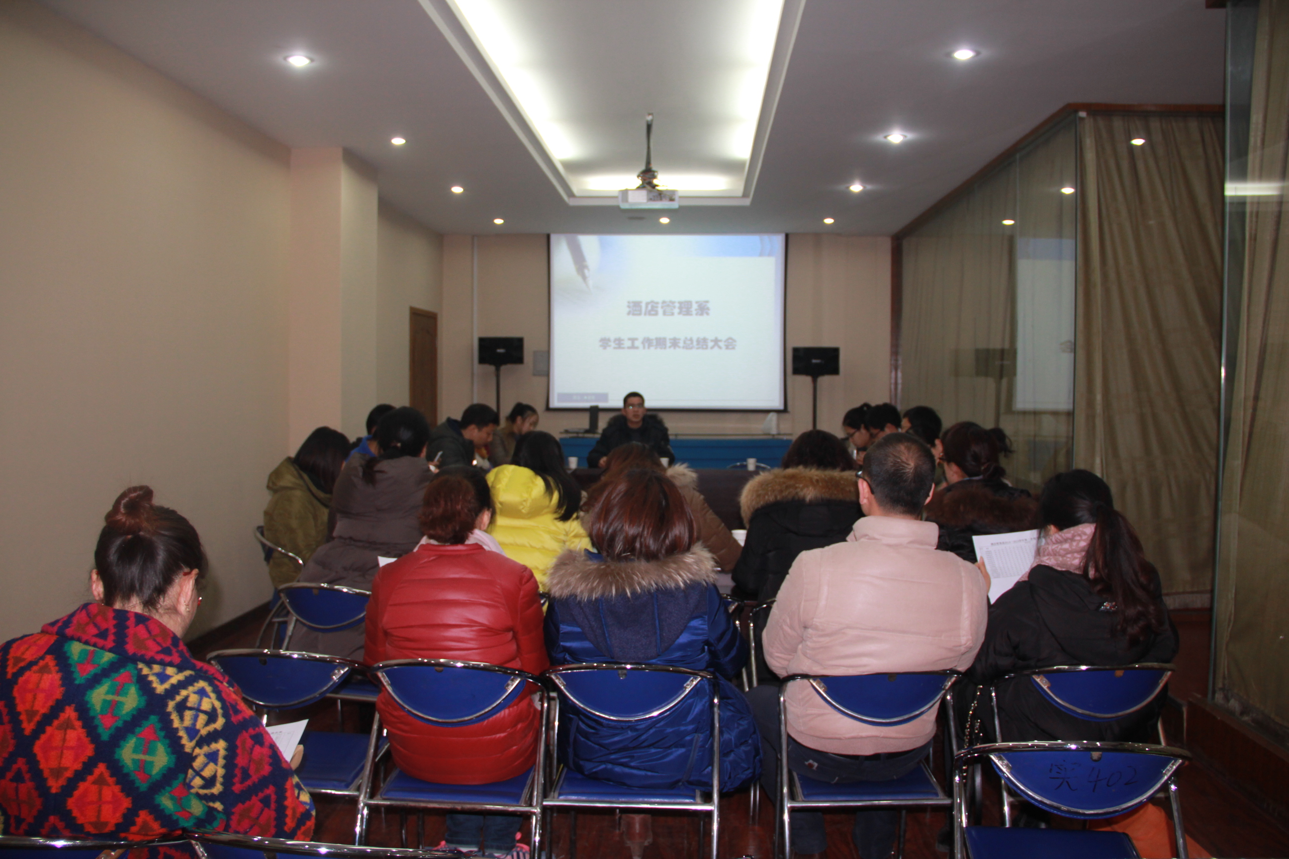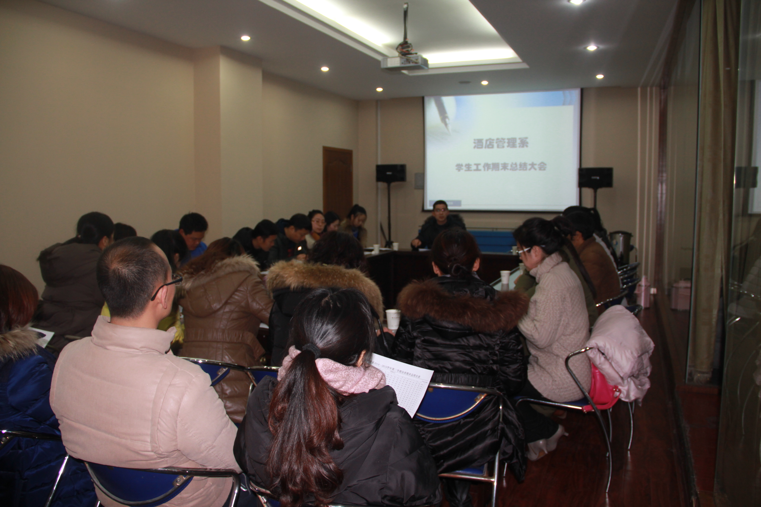 为了全面总结2015学年学生工作,1月16日下午,酒店管理系在实训楼组织召开年度学生工作总结会。系主任李晓东,党总支副书记陈海彬,各班主任和辅导员老师参加了会议,会议由陈书记主持。