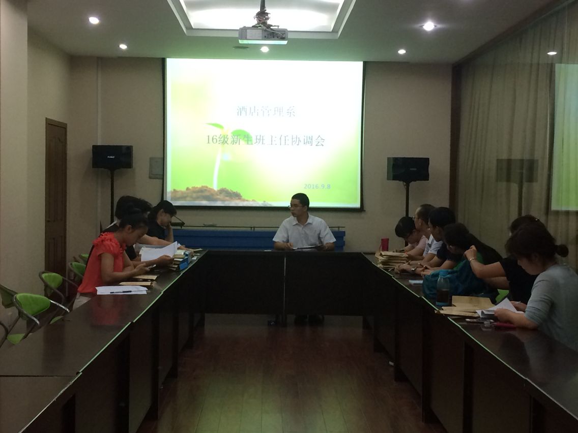 酒店管理系2016级新生班主任认真听取并针对迎新方案提出看法,大家共商迎新的事宜,交流非常愉快。此次会议的召开,为新生班主任特别是首次做班主任工作的老师点明了方向。