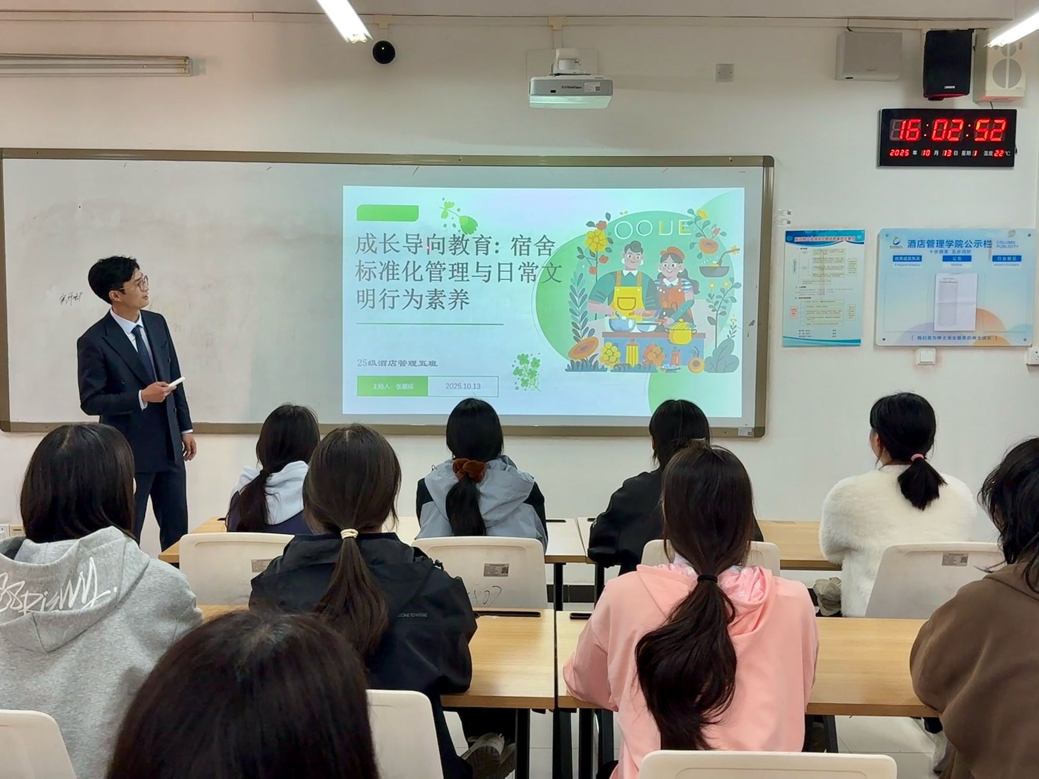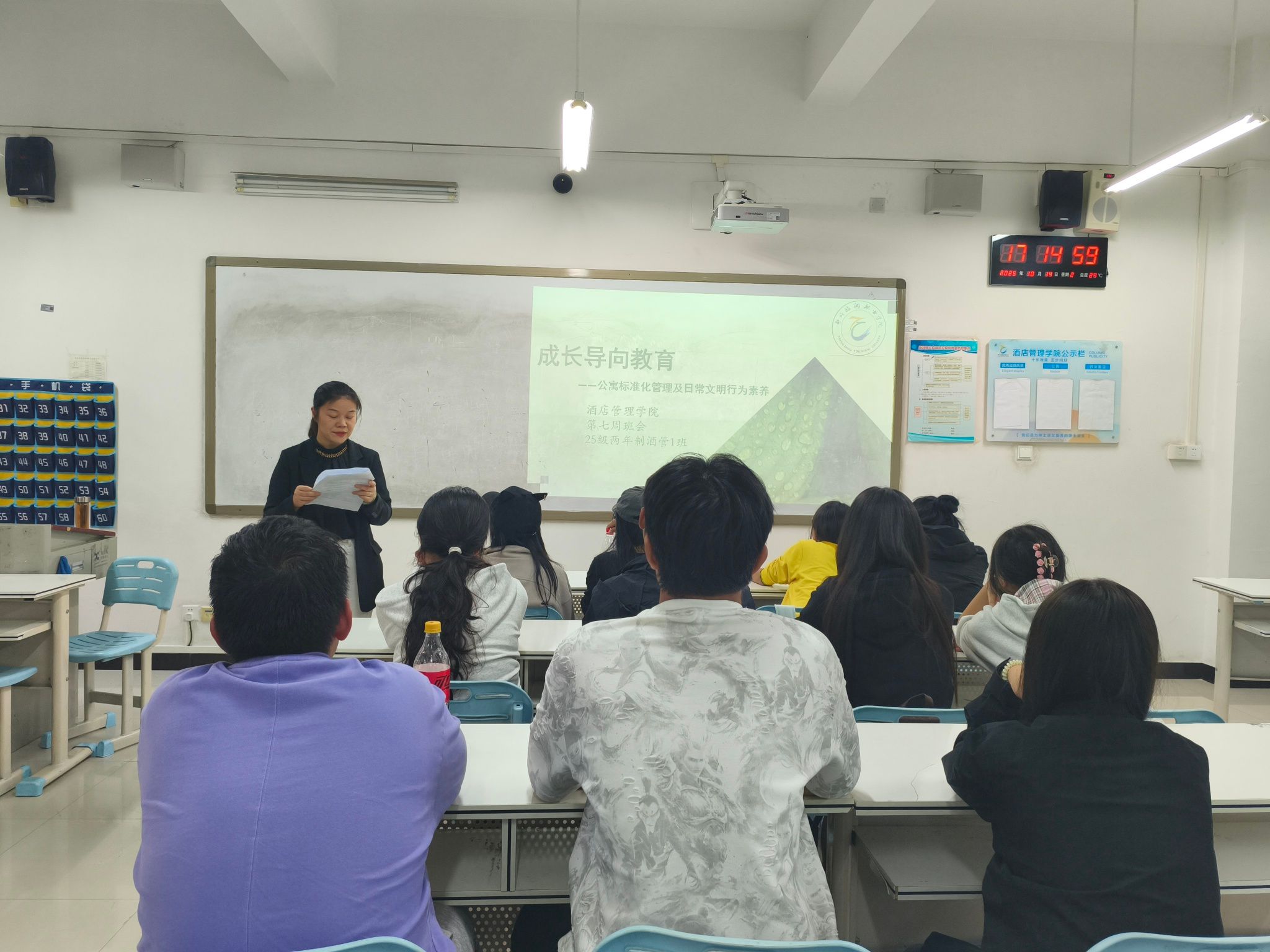 为了落实成长导向教育要求,强化公寓育人功能,酒店管理学院于本周召开“成长导向教育——公寓标准化管理及日常文明行为素养”主题班会。