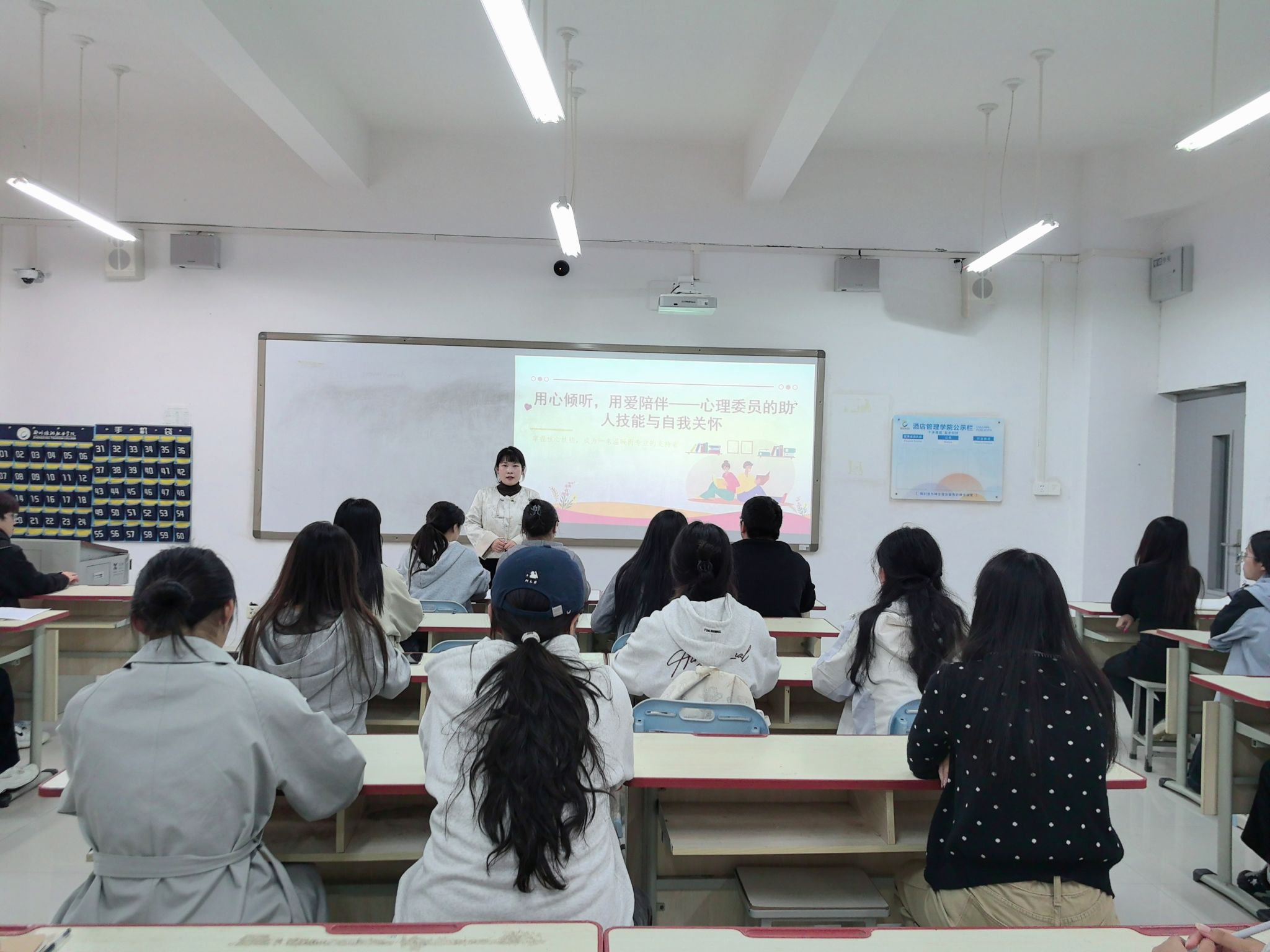为帮助心理委员掌握专业助人技能,同时做好自我关怀,酒店管理学院于10月15日开展“用心倾听,用爱陪伴——心理委员的助人技能与自我关怀”培训会,旨在培养温暖且专业的学生心灵支持者。