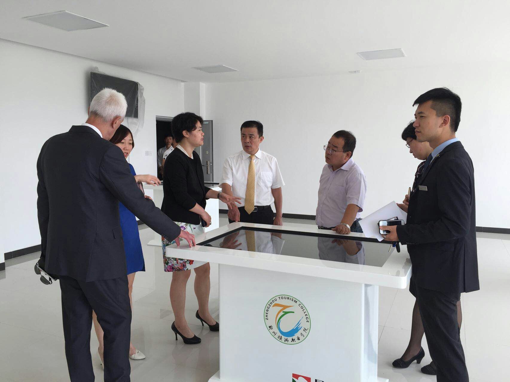 樊院长首先对韩冬梅女士一行的到来表示欢迎,并陪同韩女士一行参观了酒店管理系新建实训室。韩女士对酒店管理系实训室建设给予高度评价。随后,双方就校企合作、实习实训、课程交流等方面内容进行了深入交流,达成了共识。