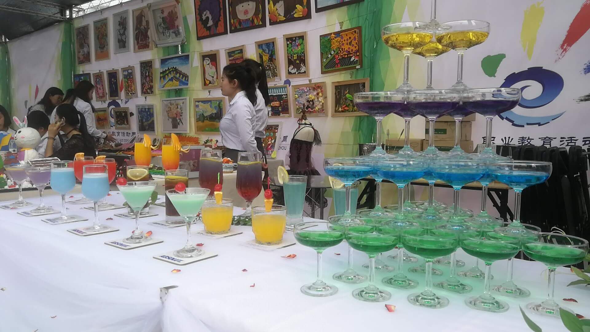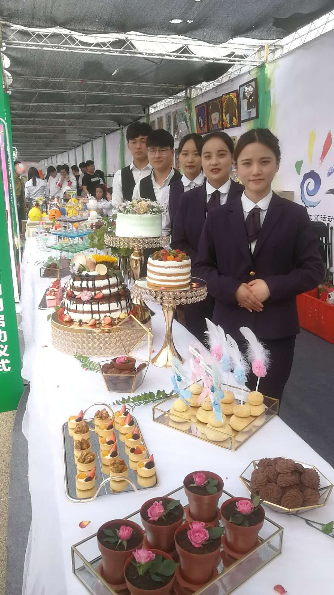 在接到邀请后,侯书记和孙老师带领学生团队随即开始了紧张的筹备工作。经过一周的精心准备,活动当天,孙老师和同学们先在学校准备好物品及食材,然后带着饱满的热情来到现场,以最佳的状态充分展示出我系西点烘焙和调酒的教学成果,展现出旅院人的专业风采。活动精彩纷呈,酒管系团队表现突出,获得一直好评。