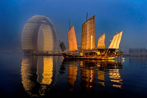 湖州喜来登温泉度假酒店位于中国浙江省湖州市闻名遐迩的太湖南畔。这座指环形度假酒店呈弧形横跨湖面之上,成为湖州的标志性景观。