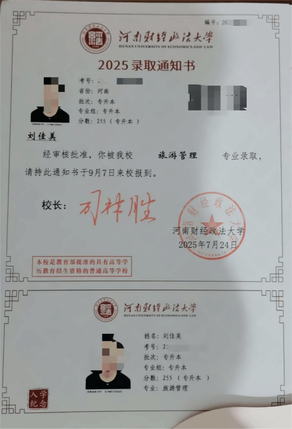 上岸绝非一蹴而就之事,刘佳美凭借自身的执着与不懈努力,最终成功考取河南财经政法大学。对此,正如刘佳美对学弟学妹们的建议所言,要学会有效利用各类资源,主动打破信息壁垒。合理借鉴网络上的升本经验,广泛收集学习资料,并通过反复练习历年真题,保持对模块题型的熟练度,从而实现从量变到质变的飞跃。