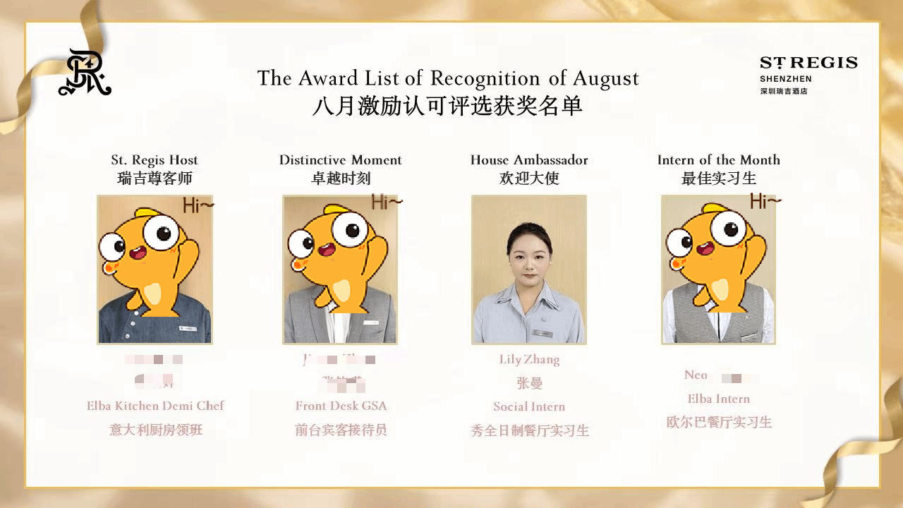 进入实习的第一天,我心中交织着期待与忐忑。从校园学子蜕变为职场新人,角色的转换带来新鲜感,也裹挟着紧张。餐厅经理和酒店主管作为我的行业导师,引导我学习察言观色、洞察宾客喜好、赢得客人认可,并耐心解答工作难题。咨客岗位让我清晰感受到肩上的责任,人生坐标更加清晰,更深刻认识到这份工作必备的严谨细致——需保持平和心态与不耻下问的精神,遇事冷静思考,多听取建议,戒除急躁,对自己的每个行动负责。这段实习时光里,我逐渐融入了新环境,学会了更高效地与同事沟通协作。当荣获"欢迎大使"称号时,荣幸与动力充盈心间。这份认可如同温暖的肯定,让我感到倾注的热情与善意被看见、被珍视,也悄然赋予我一份使命感——未来要更努力扮演好"纽带"角色,以更真诚的姿态回应每一份期待。