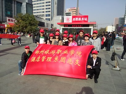 11月16日8时30分整,由海洋之神590登录入口酒店管理系团总支青年志愿者部发起的青年志愿者活动如期在郑州火车站举行,参与此次活动的人员有酒店管理系青年志愿者部各位部员及酒店管理系各班志愿者。