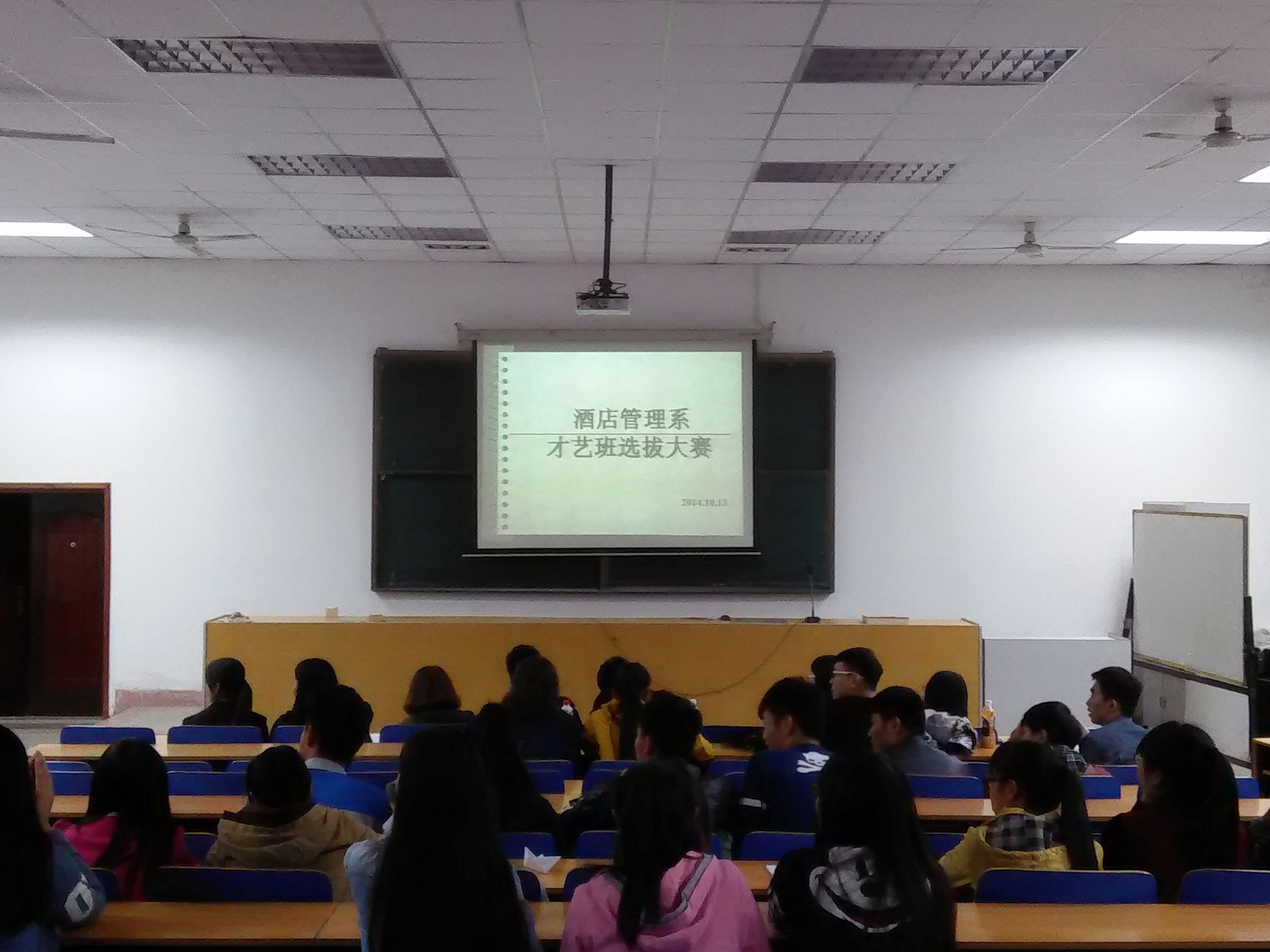 为丰富酒店管理系学生课余生活,陶冶情操、培养个人才情,酒店管理系学生会联合系团总支于2014年10月13日在实训楼一楼报告厅举行酒店管理系才艺展示大会,出席此次活动的有酒店管理系书记朱丽君、学生会宣外部部长朱乐宾、文体部部长李想及团总支、学生会干部,酒店管理系才艺展示学员。