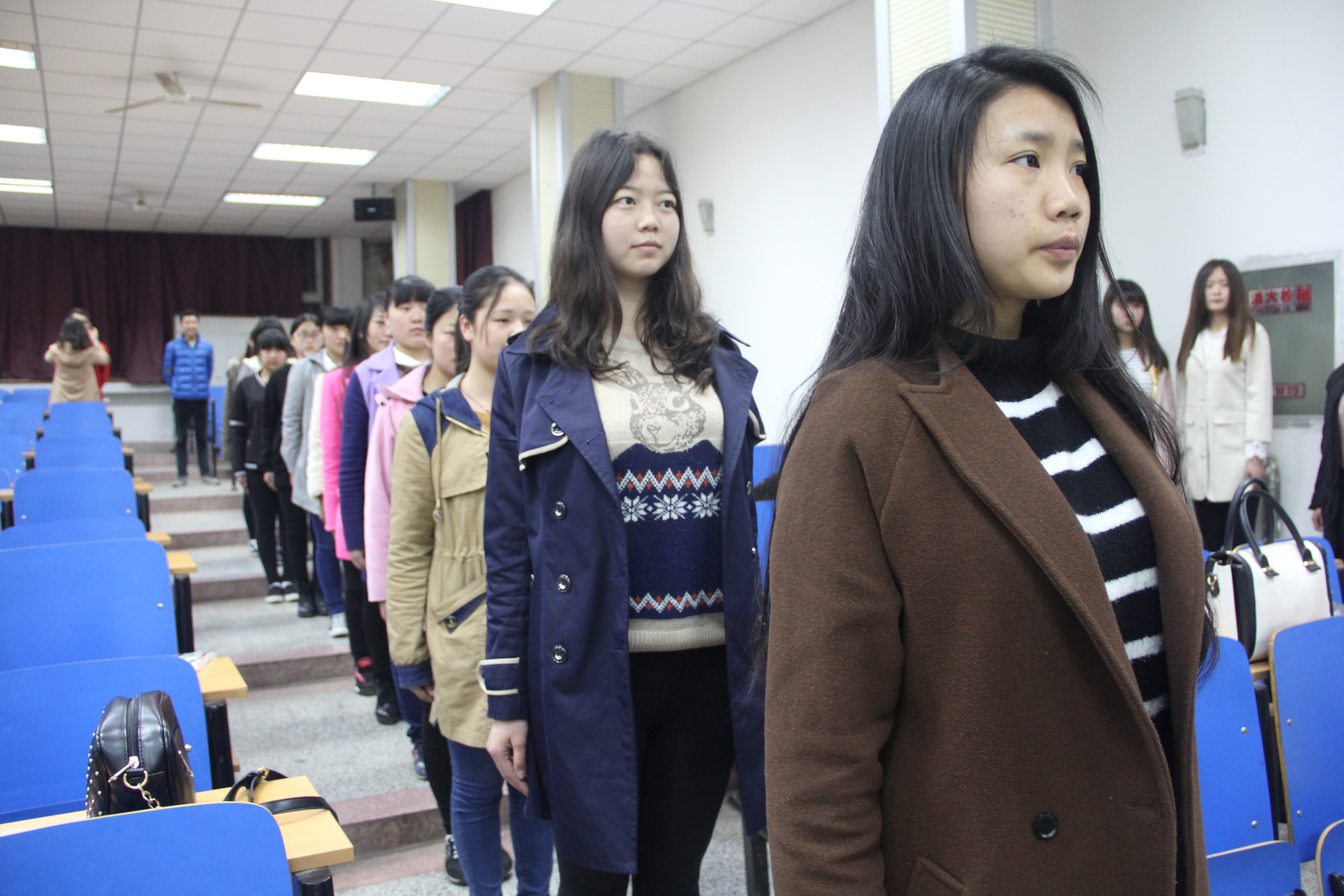 “礼仪志愿服务队”活动的第一课邀请了我院礼仪队的学生为我系志愿者服务队学生讲解实用礼仪。礼仪的本质并不在于其复杂的外在形式,而是在于对他人的尊重,而这尊重需要通过适当的形式表现出来。练习咬筷微笑和头顶书本站姿,好的礼仪代表着酒店人的形象,而微笑是志愿者的名片。