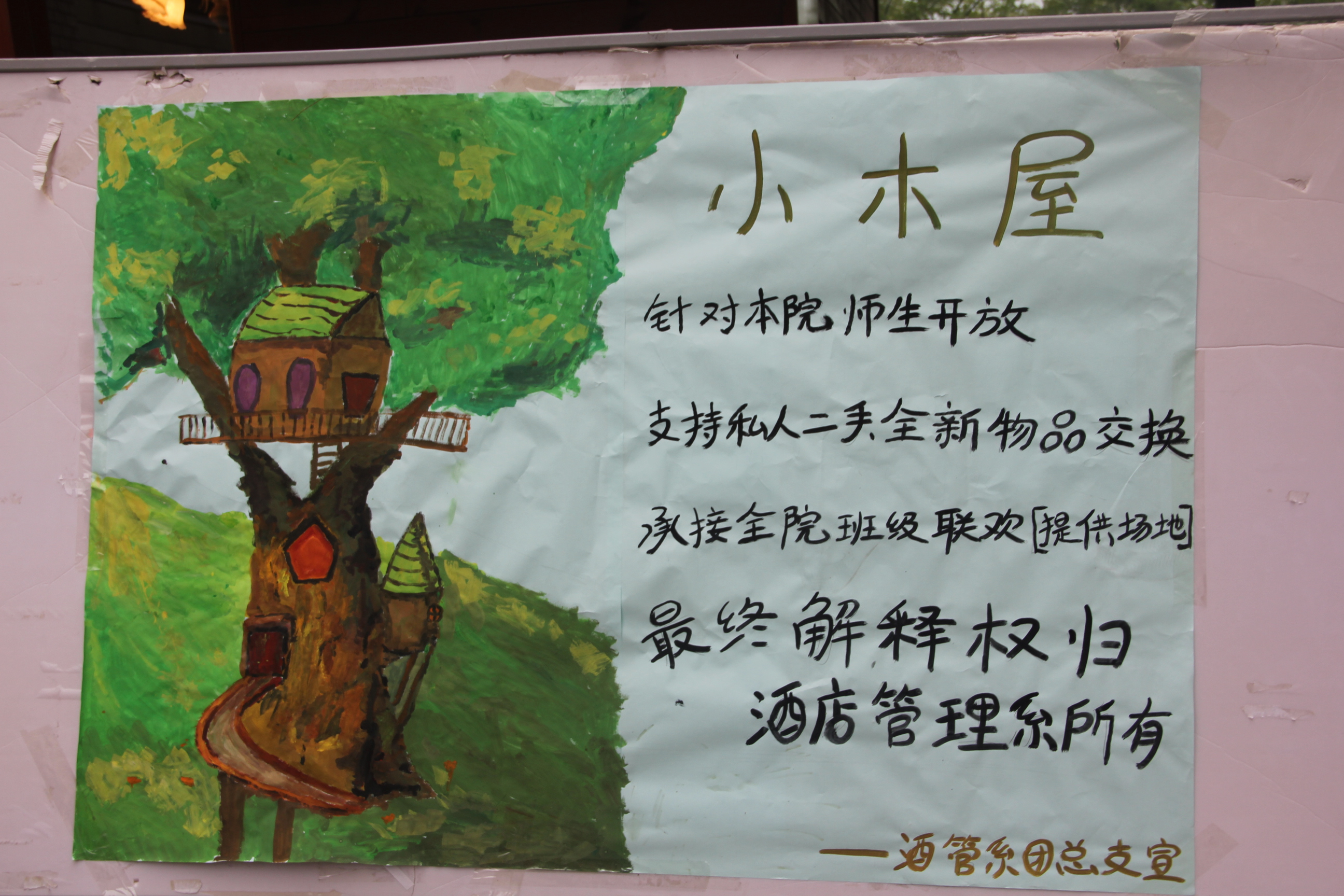 为鼓励大学生创业的热情,培养大学生创业能力,同时方便同学们的购物需求。2015年10月26日下午13时30分,酒店管理系在实训楼隆重举行了“小木屋开业典礼”。
