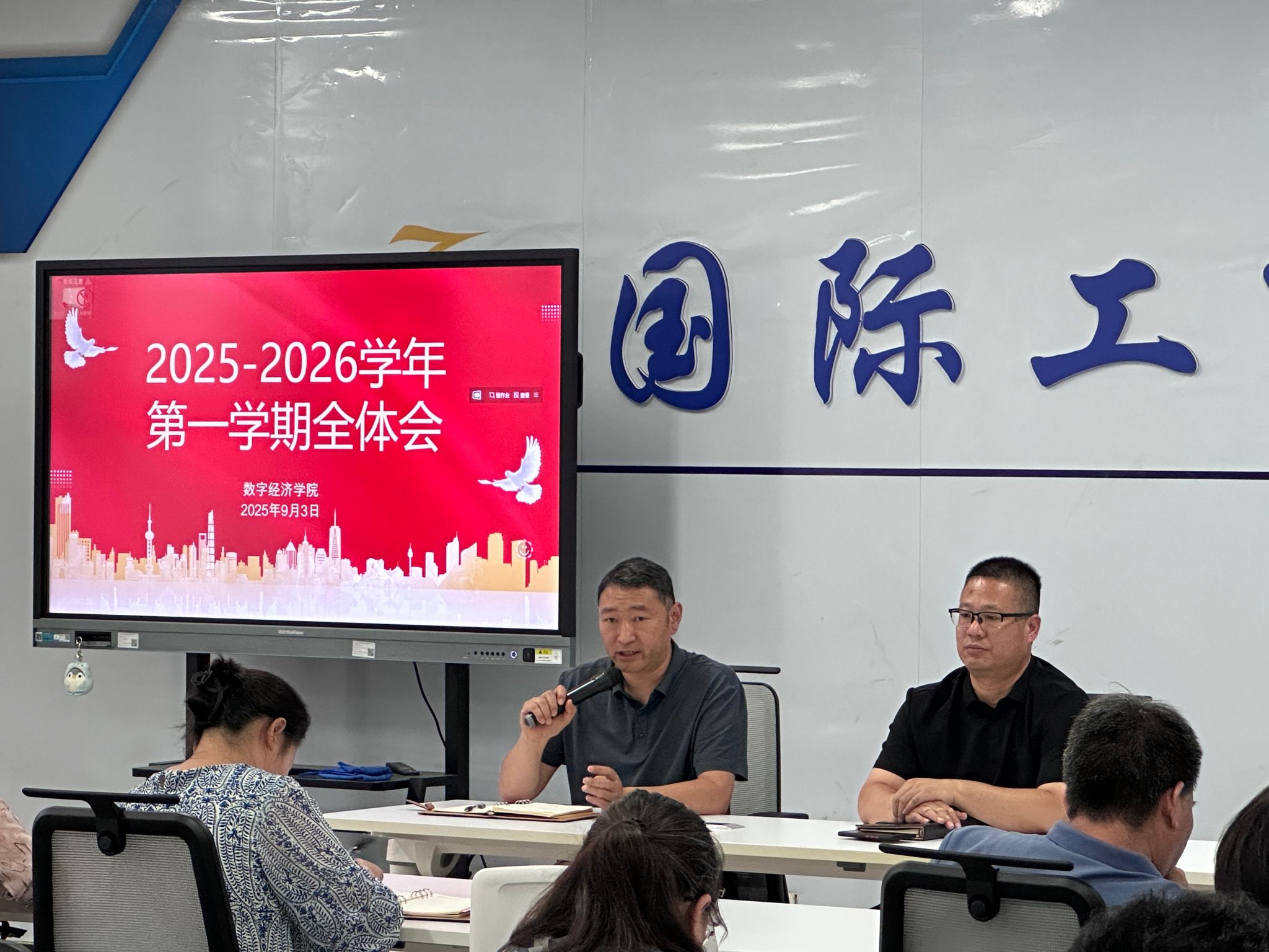 为做好新学期开学工作,2025年9月3日,数字经济学院召开2025-2026学年第一学期全教工体会。会议在1B教学楼304会议室举行,学院党总支书记刘兆坤,学院院长秦合岗,副院长郭崖及学院全体教职工参会。