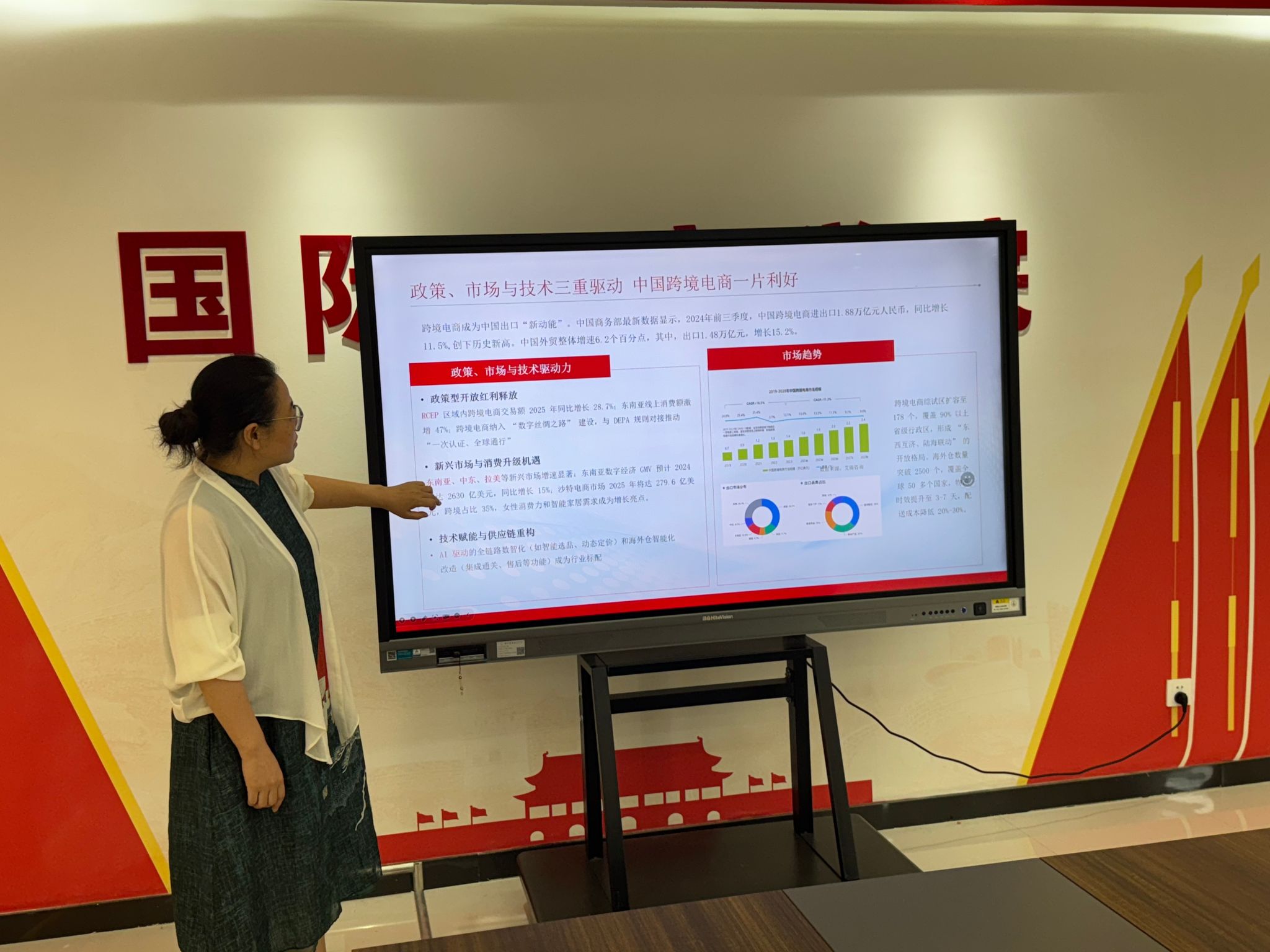 会上,电子商务专业主任陈老师围绕AI数智电商实训中心的建设背景、项目简介、建设内容、项目预算以及预期效益,展开详细讲解,重点介绍了中心将融合的AI电商平台、电商模拟、电商数据分析等核心实训模块,充分体现数智化与专业教学的深度结合。