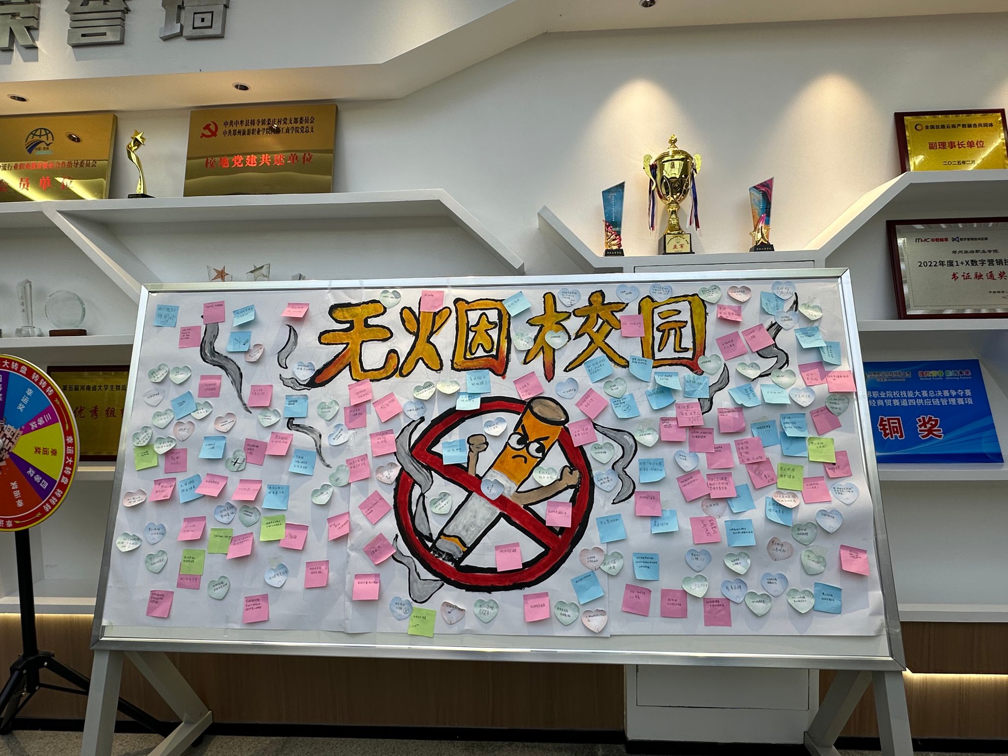 2025年10月16日下午,数字经济学院于1B教学楼前成功开展“无烟宿舍,健康你我”主题宣传教育活动。此次活动聚焦宿舍安全与健康生活,旨在引导学生远离烟草,共同营造文明、安全、清新的学习生活环境。现场展板图文并茂,互动区域布置温馨,五彩便利贴随风轻舞,无声传递着对健康校园的共同守望。