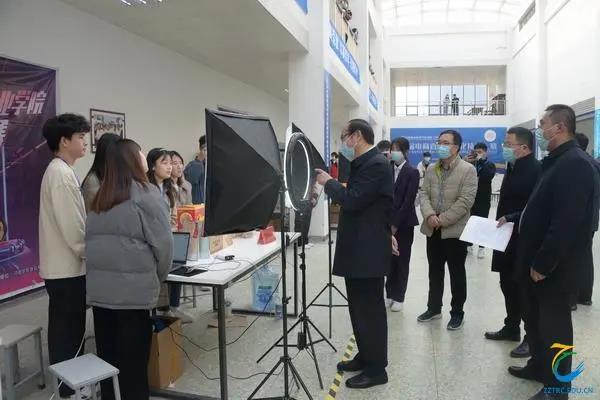 校领导与来宾现场观摩了各组比赛,认真了解学生们的直播情况,高度认可本次比赛效果。