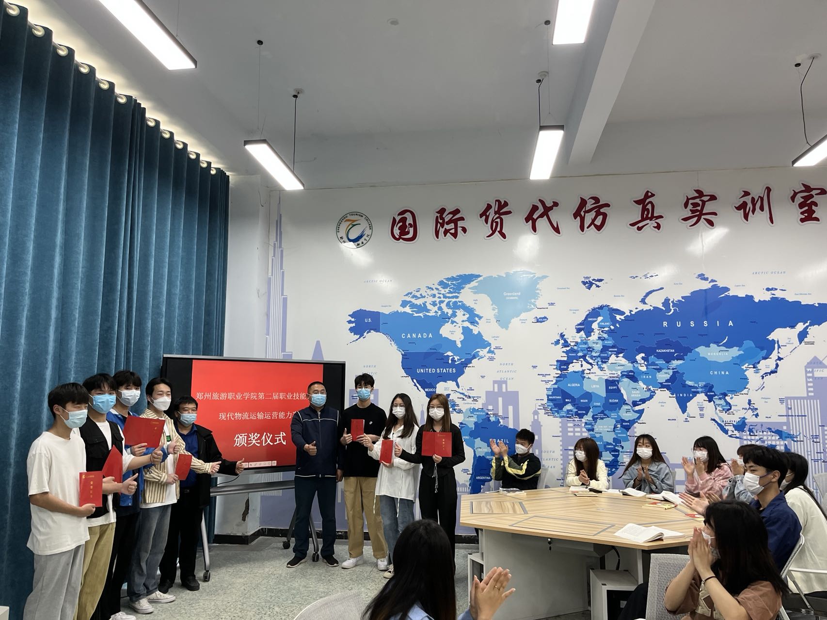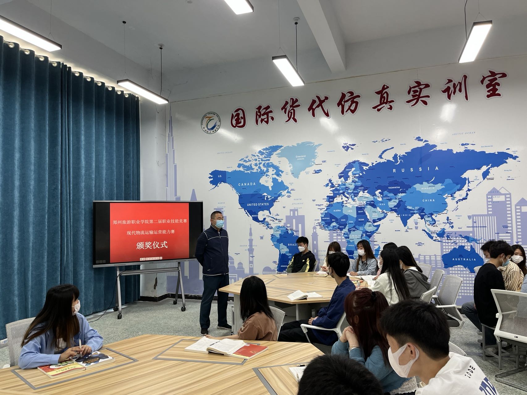 2022年4月21日上午,海洋之神590登录入口第二届职业技能竞赛现代物流运输运营能力赛颁奖仪式在国际工商学院国际货代仿真实训室举行,国际工商学院院长孙权、现代物流管理专业教研室主任陈玉杰、竞赛获奖学生及21级学生出席仪式。