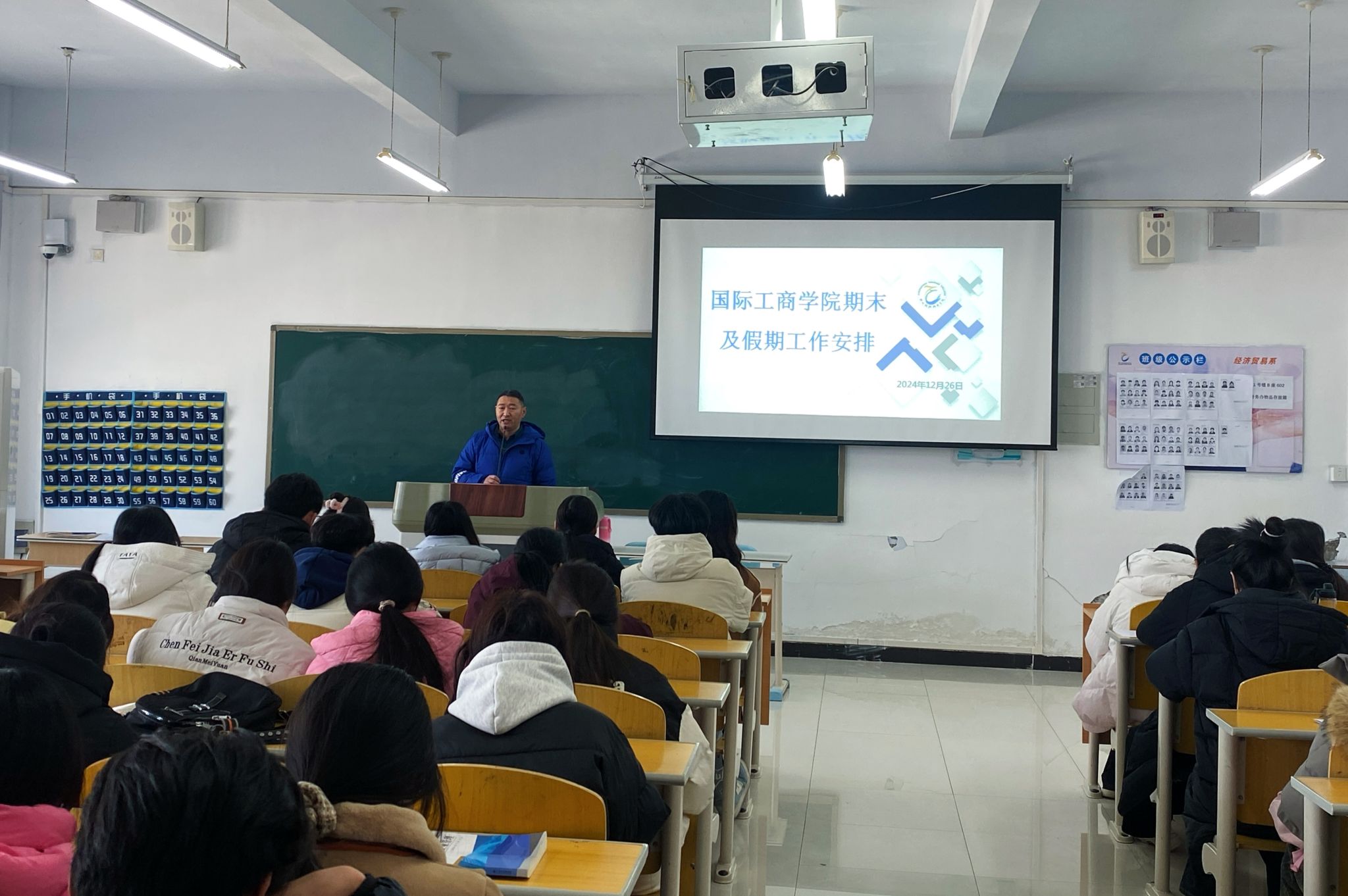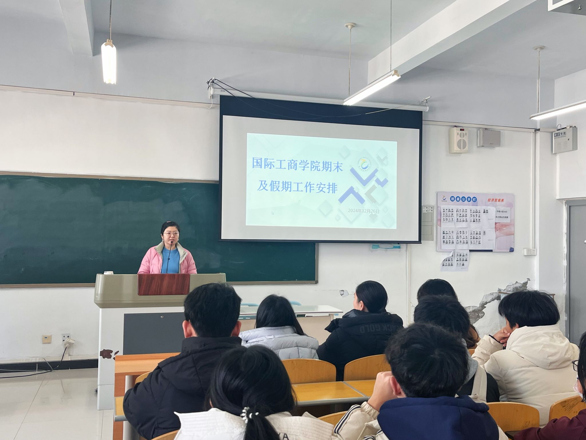 随着一年工作的圆满落幕,寒假将至。为了保障学生假期里身心健康,国际工商学院于12月26日在教学楼举行假期工作安排会议。此次会议我院党总支书记刘兆坤、团总支书记谢锡莹、生活部老师葛秀丽出席本次会议,由各班班长、团支书、生活委员共同参加。会议特别强调了假期安全、反邪教宣传、假期兼职安全等关键领域的工作安排,及各部门干部的工作安排与总结。