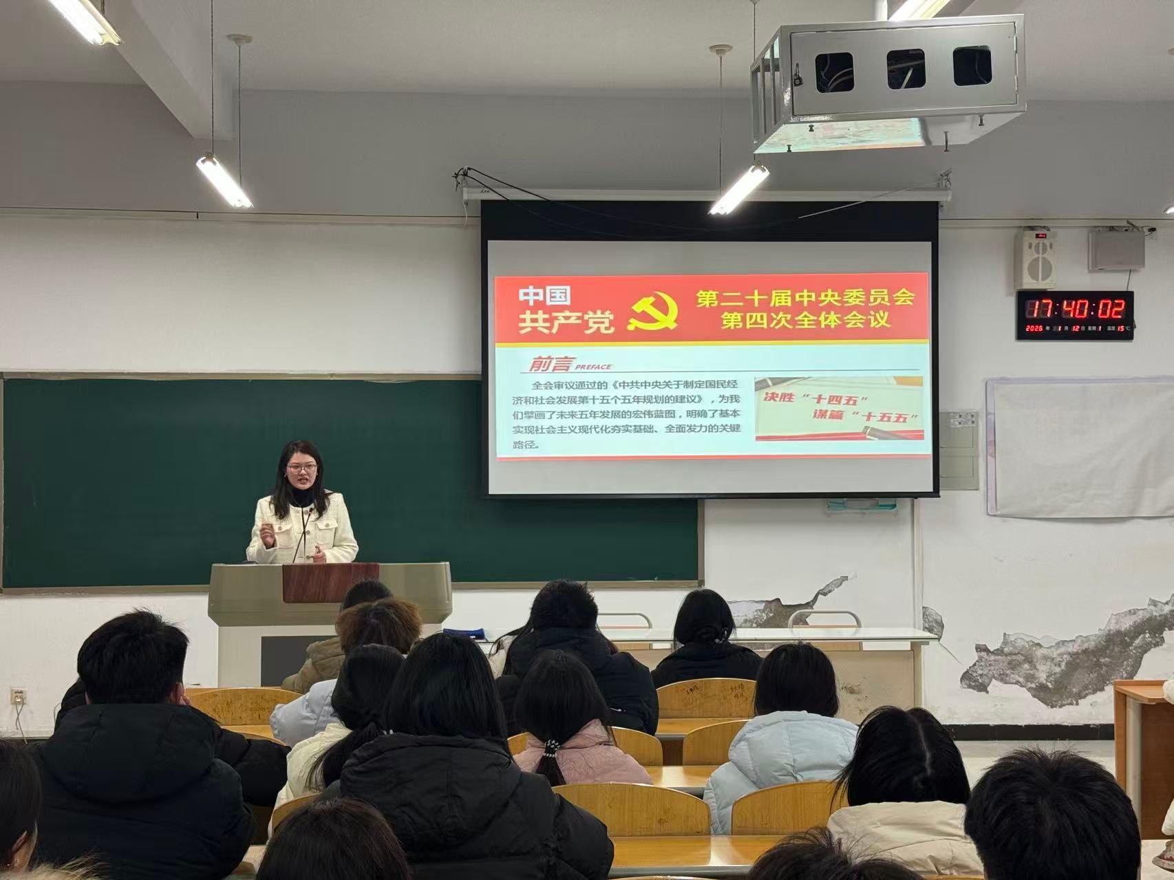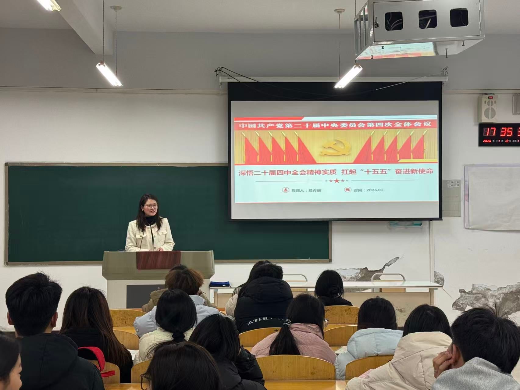 为深入学习贯彻党的二十届四中全会精神,2026年1月12日,数字经济学院学生党支部以“深悟党的二十届四中全会精神实质,扛起‘十五五’奋进新使命”为主题开展专题党课。学院24年度、25年度入党积极分子参加学习,共同凝聚奋进力量、明确前行方向。