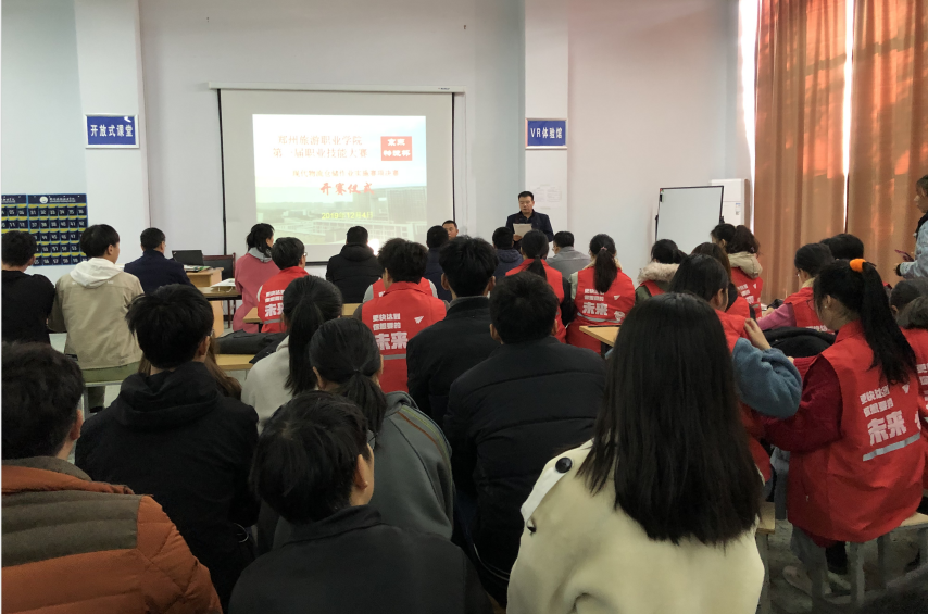仓储作业大赛决赛方案实施赛项开赛仪式由物流管理专业教研室主任陈玉杰老师主持,经济贸易系主任孙权向校内外同仁及专家致欢迎词。