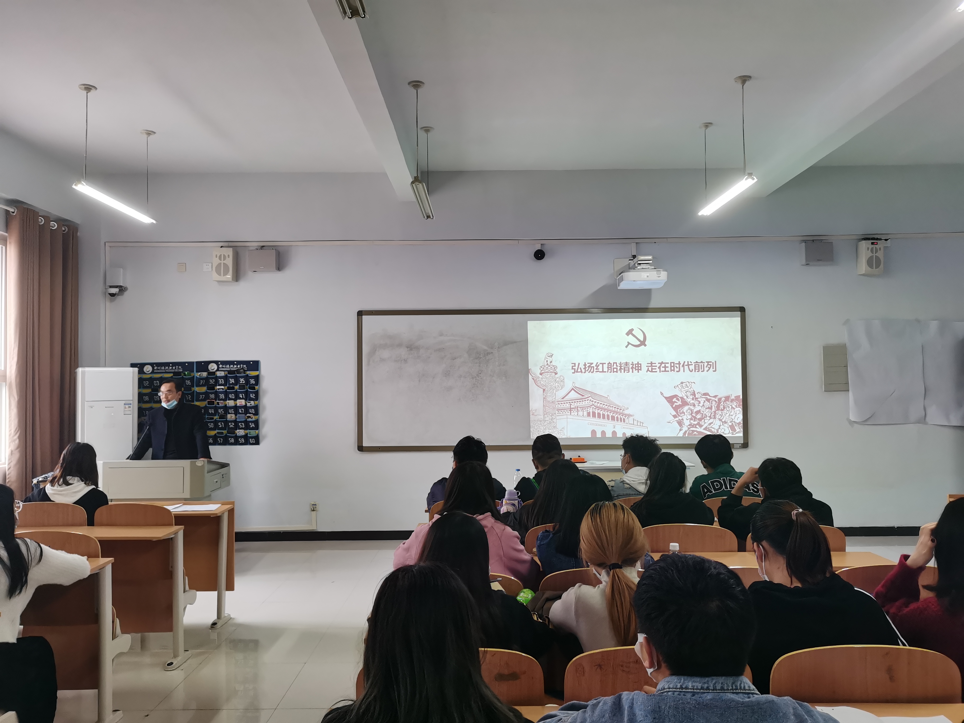 课上,张鹏首先采取随机提问的方式,以“为什么入党?”,“我们的国歌是什么?”为切入点讲述了红船精神的由来:1921年8月初,中国共产党第一次全国代表大会在浙江嘉兴南湖的一条游船上胜利闭幕,庄严宣告中国共产党的诞生。这条游船因而获得了一个永载中国革命史册的名字---红船。红船劈波行,精神聚人心。红船所代表和昭示的是时代高度,是发展方向,是奋进明灯,是铸就在中华儿女心中的永不褪色的精神丰碑。