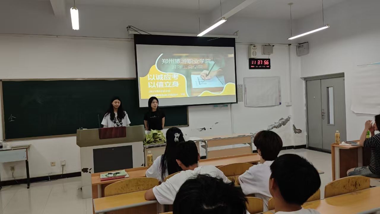 为通过诚信教育,引导学生树立正确的价值观和道德观,强化诚信意识,营造良好的学风和校园文化氛围。国际工商学院积极开展“以诚应考,以信立身”的活动,通过主题班会经验分享励志视频播放等多种形式,为学生的成长和发展提供坚实保障。
