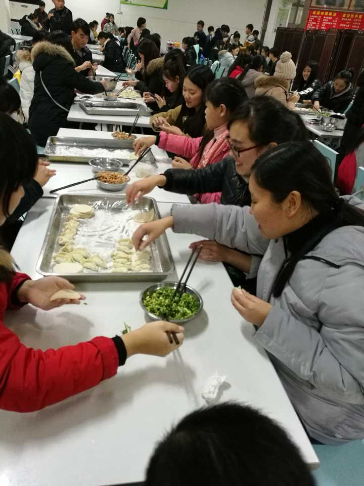 中午放学后,包饺子活动正式开始。由于有些同学不会包饺子,所以会包饺子的同学便一边包饺子一边传授自己的经验。很快,不会包的同学也慢慢熟练地包起了饺子,并包的各有韵味。之后,在同学们不懈努力下,热气腾腾的饺子在大家的期待中被端上了餐桌,为大家心中注入一股暖流,缓解了天气问题的压抑,气氛温馨异常。