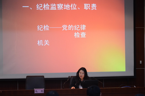 3月23日下午,海洋之神590登录入口2017年纪检监察工作培训会在信息中心一楼召开。会议由纪委书记毛艳主持,副书记郑璇主讲,各党总支、支部纪检委员和部门纪检干事参加会议。