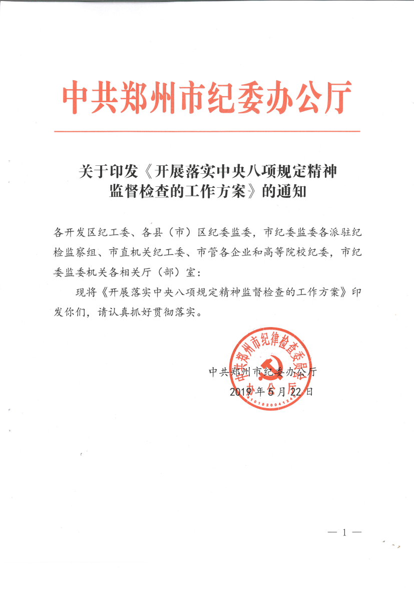 关于印发《开展落实中央八项规定精神监督检查的工作方案》的通知