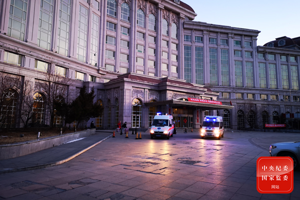 绥芬河市一处集中隔离酒店门口,两辆救护车全天候待命。