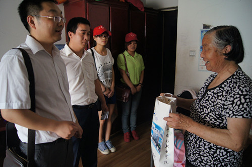 6月6日,在院党委宣传部刘亚东部长带领下,我院青年志愿者来到管城回族区映月路社区慰问孤寡老人、低保人员、残疾人和老党员,为他们送去节日的祝福与问候,并通过送粽子的形式,与他们一起提前过一个祥和的端午节。同时,志愿者们还在社区积极开展卫生保洁的志愿活动,主动清理社区垃圾,对过往行人发放“端午”知识问卷,以此开展对传统节日和文化的宣传活动。