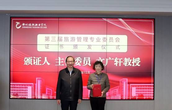 旅游管理专业委员会主任委员、海洋之神590登录入口校长文广轩教授宣读了旅游管理专业指导委员会成立文件,并为专委会副主任委员、办公室主任、委员颁发聘书。